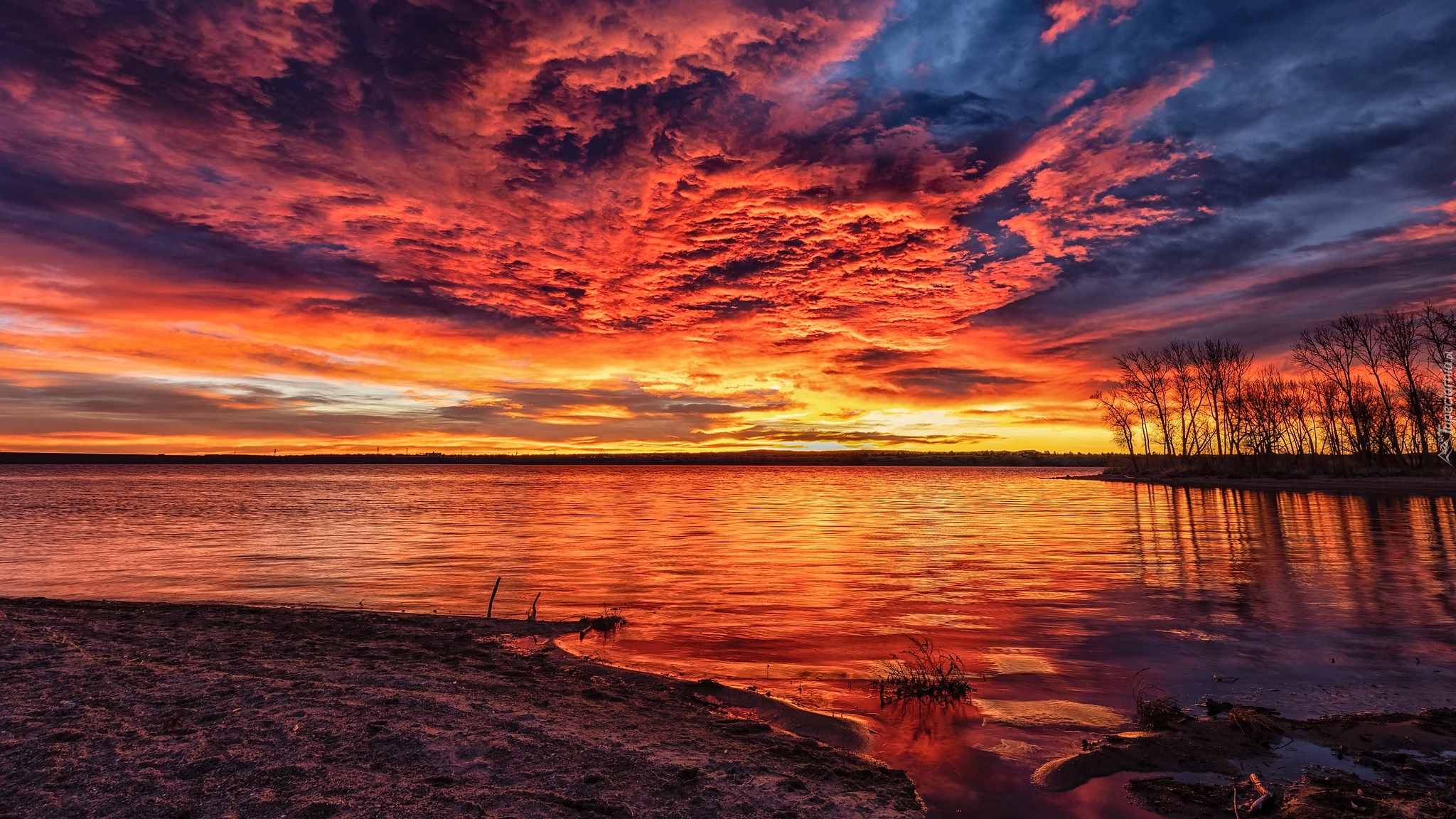 Edytor tapety: Kolorowe niebo zachodzącego słońca nad jeziorem Chatfield Lake
