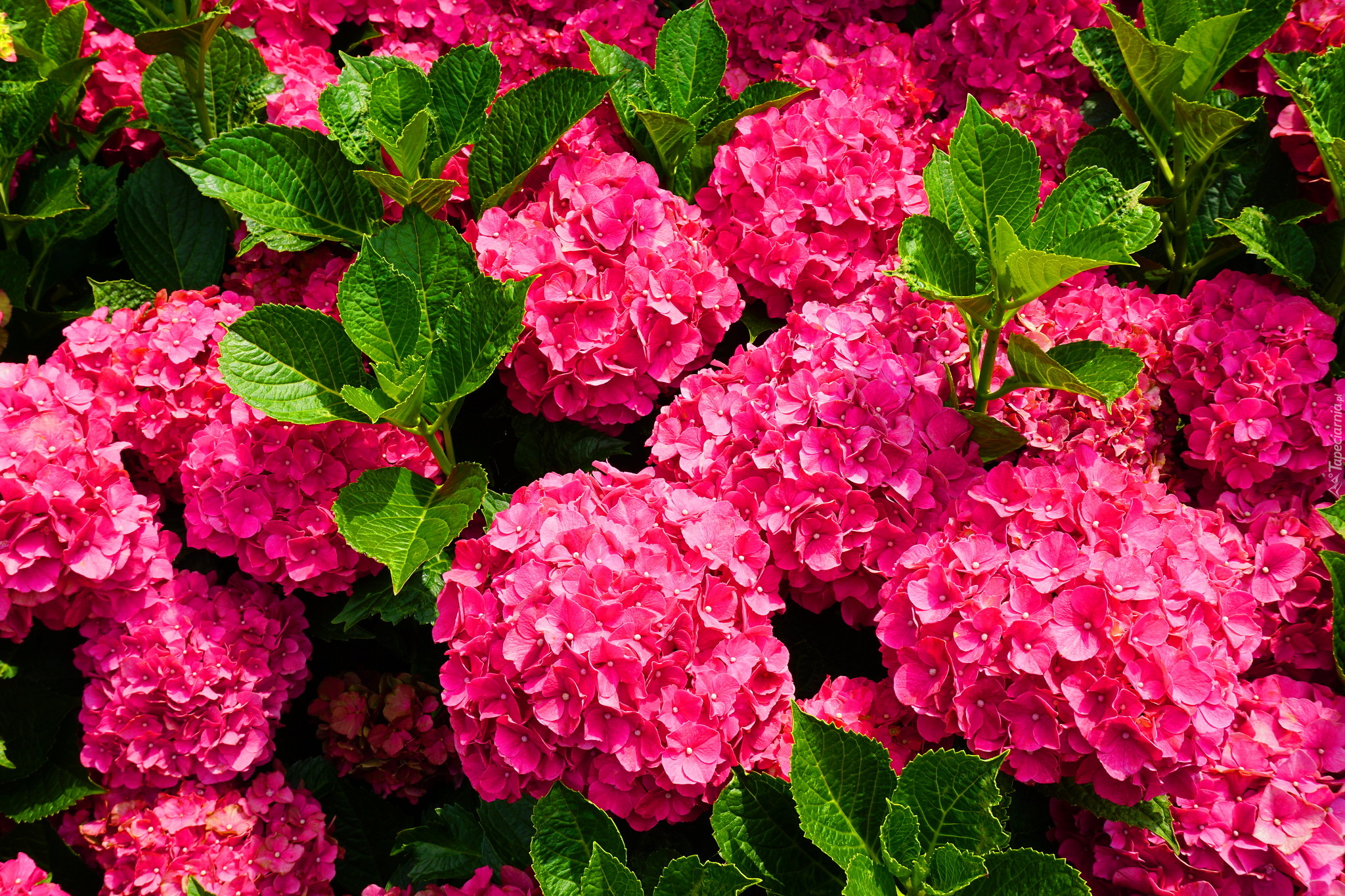 Edytor tapety: Rozkwitnięte różowe hortensje