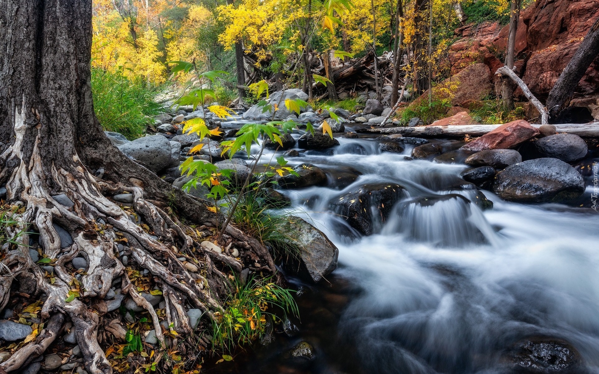 Edytor tapety: Kamienie w leśnej rzece Oak Creek w Sedonie