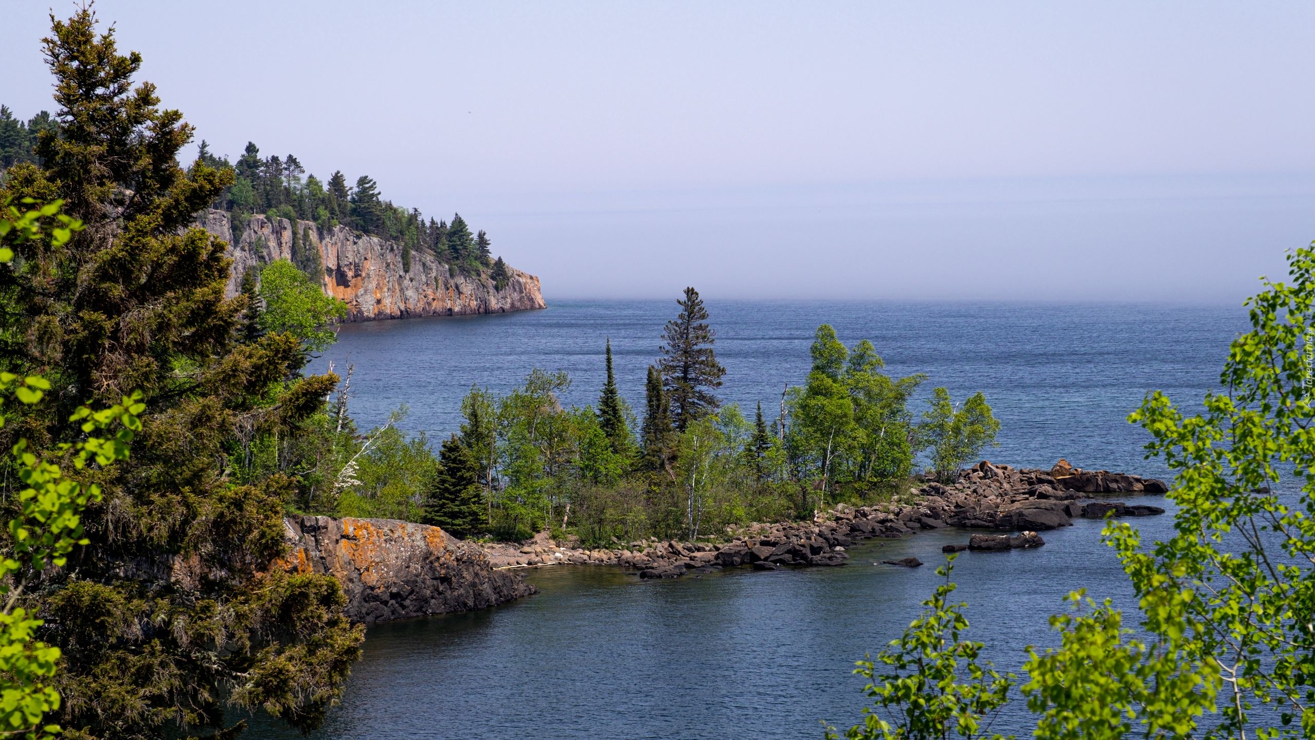 Edytor tapety: Drzewa na klifach i skalnym cyplu nad morzem