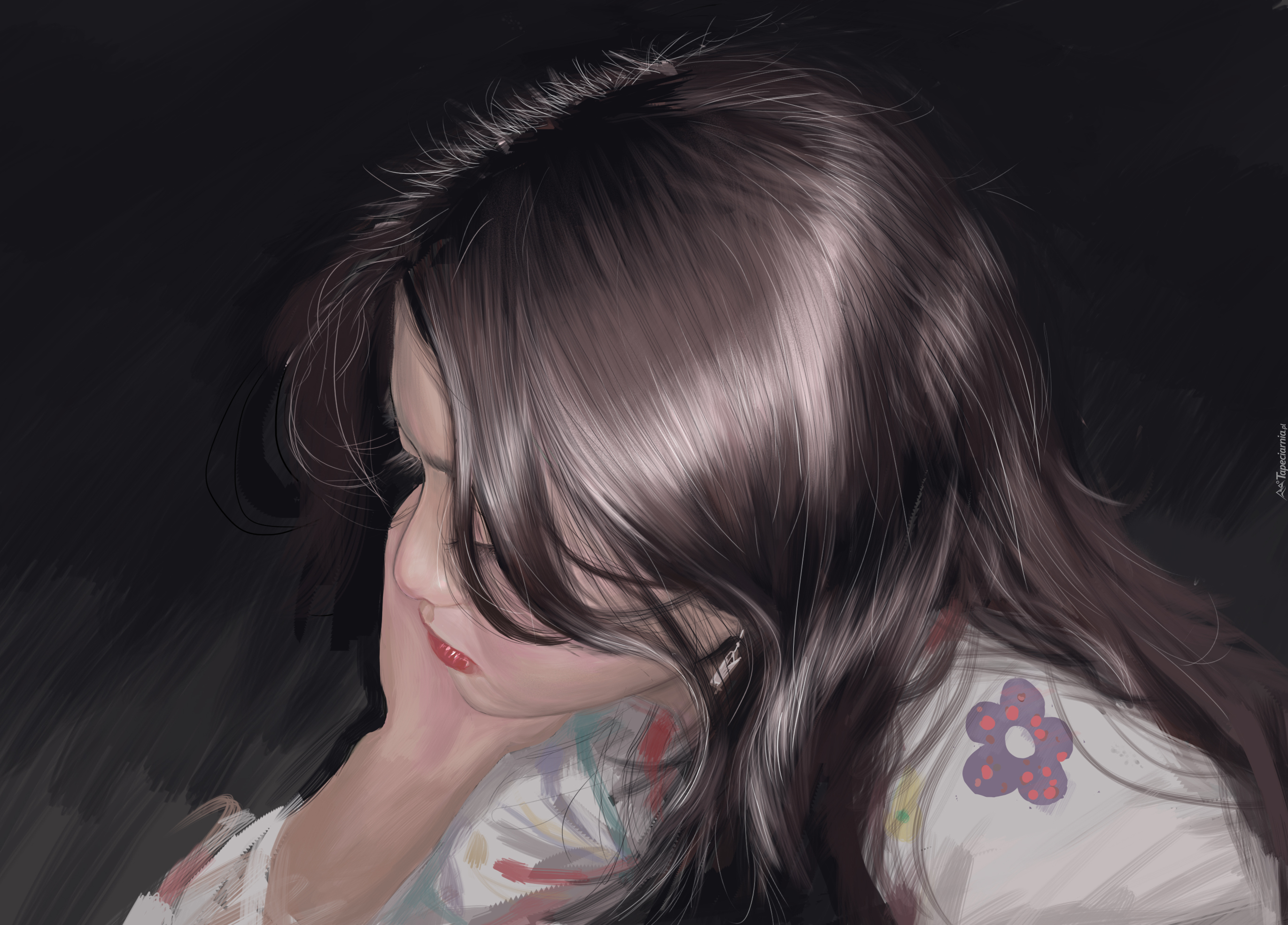 Edytor tapety: Smutna długowłosa dziewczyna w grafice