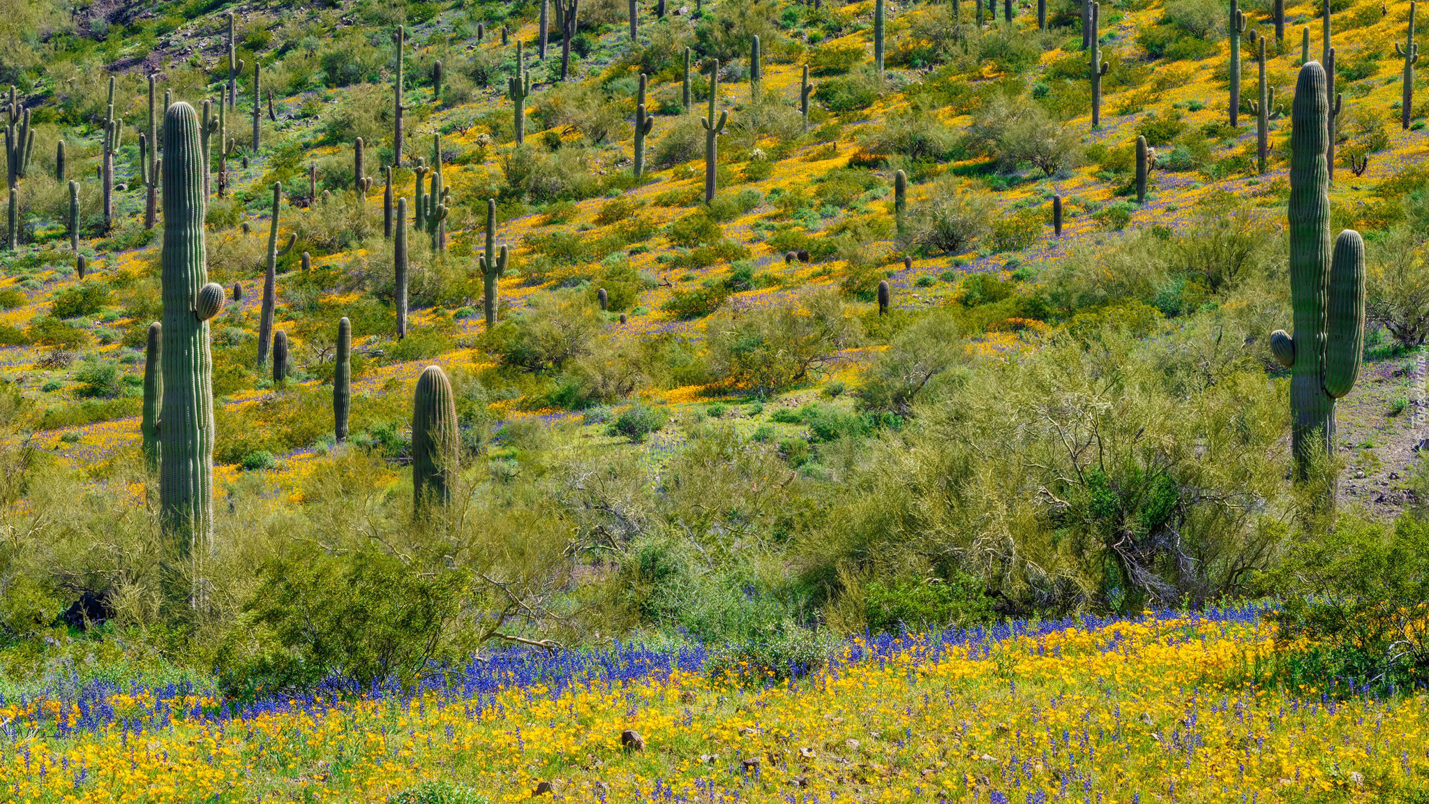 Edytor tapety: Kaktusy saguaro na wzgórzu