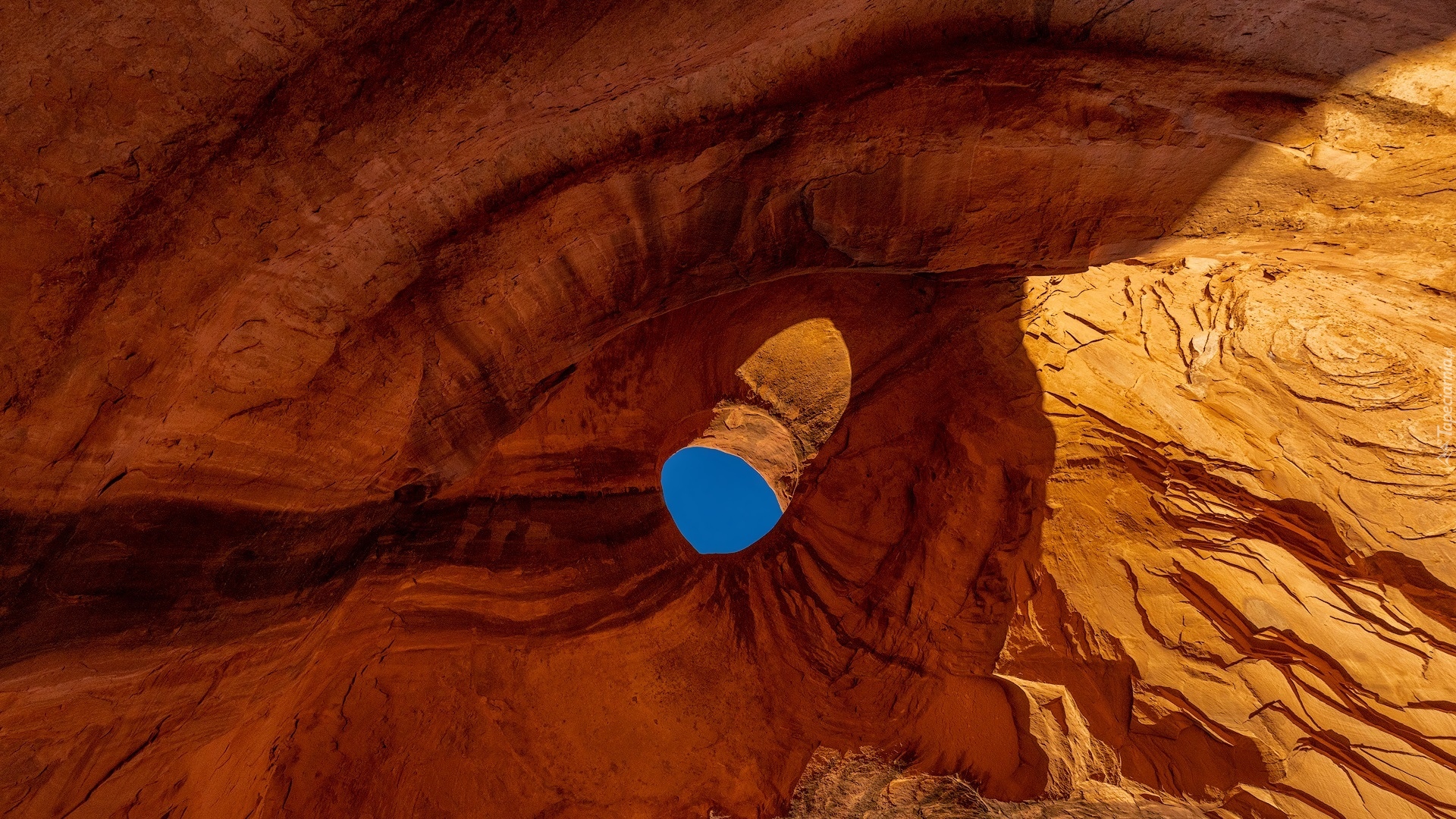Edytor tapety: Widok na niebo z jaskini w Monument Valley