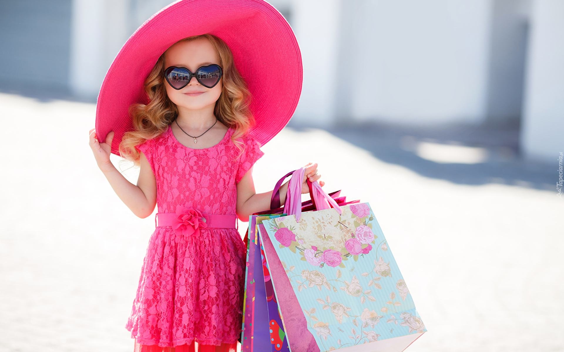 Edytor tapety: Dziewczynka w różowej sukience i kapeluszu