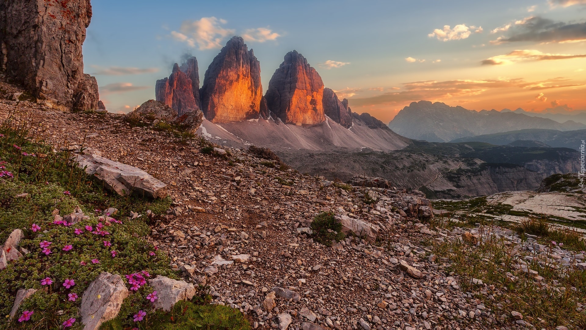 Edytor tapety: Rozświetlone Tre Cime di Lavaredo w Dolomitach