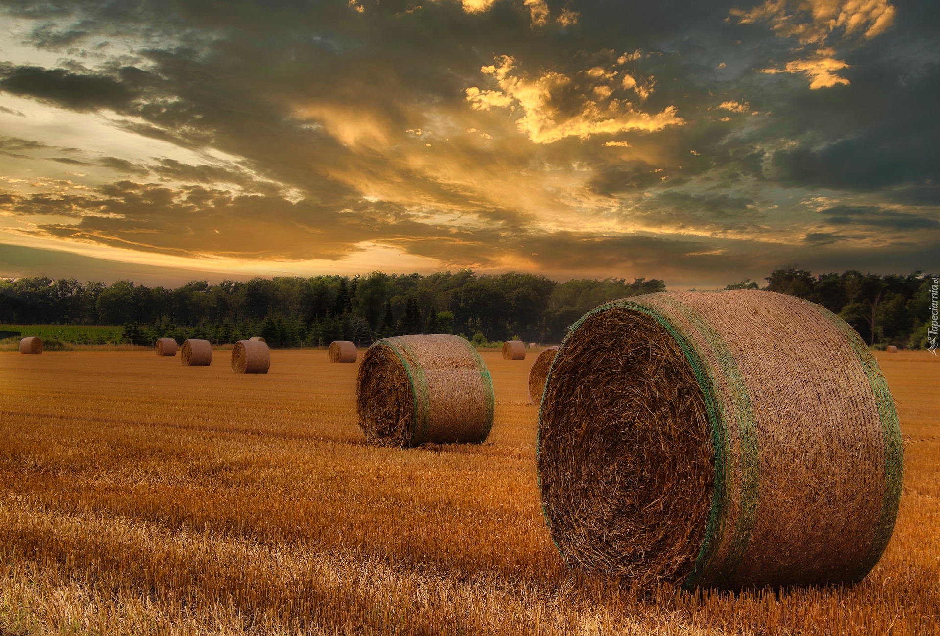 Edytor tapety: Bele słomy na polu pod zachmurzonym niebem