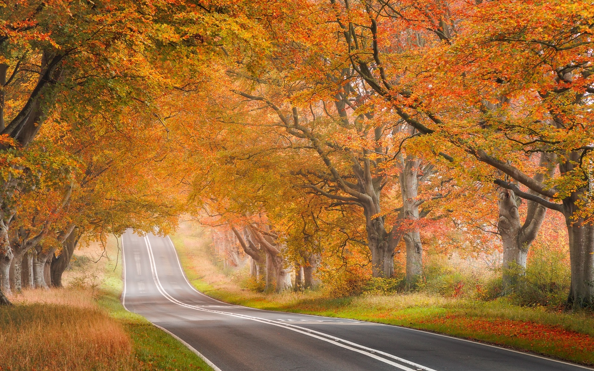 Edytor tapety: Jesienne drzewa na poboczach asfaltowej drogi