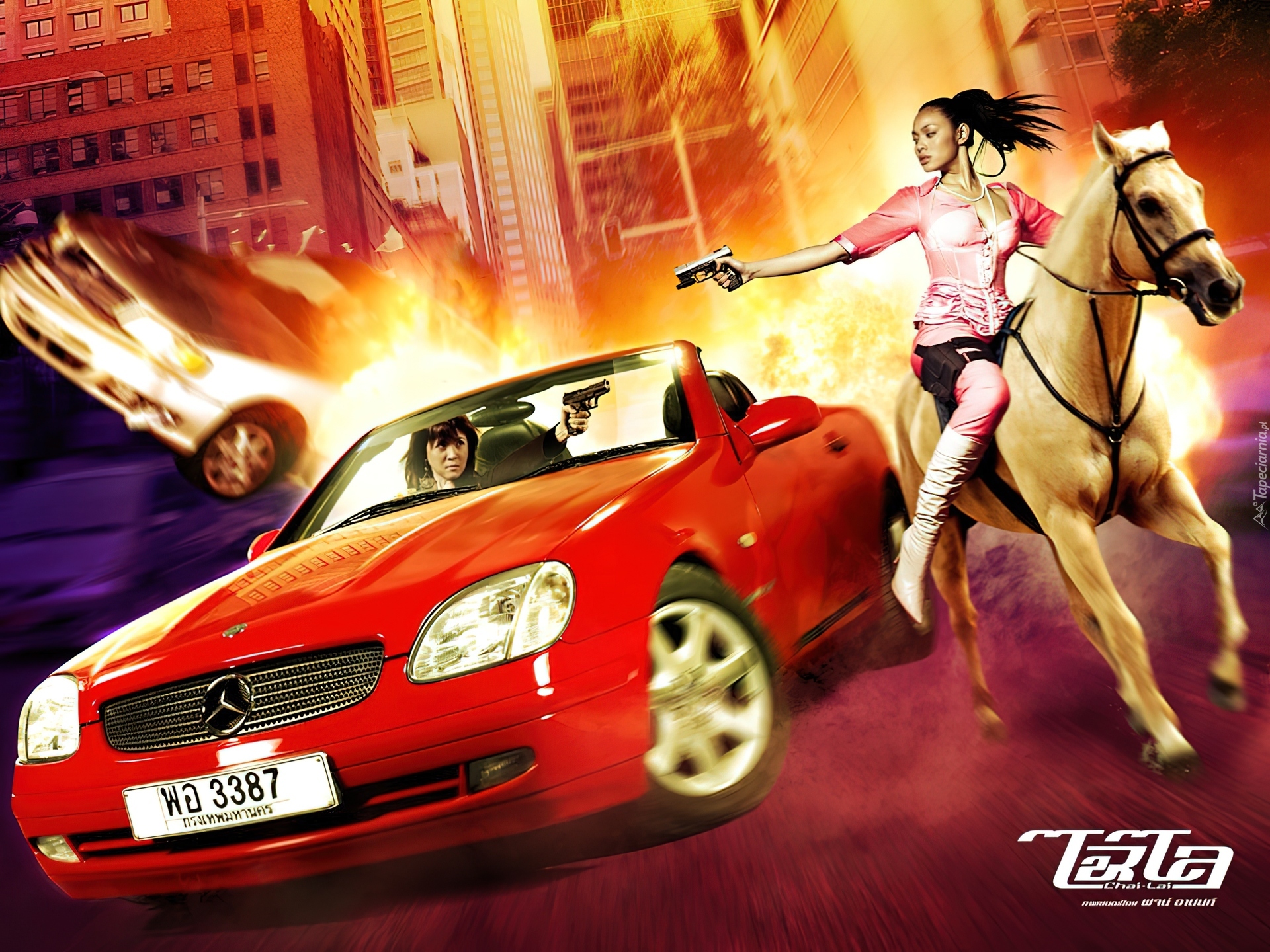 Edytor tapety: samochód, koń, miasto, Chai Lai