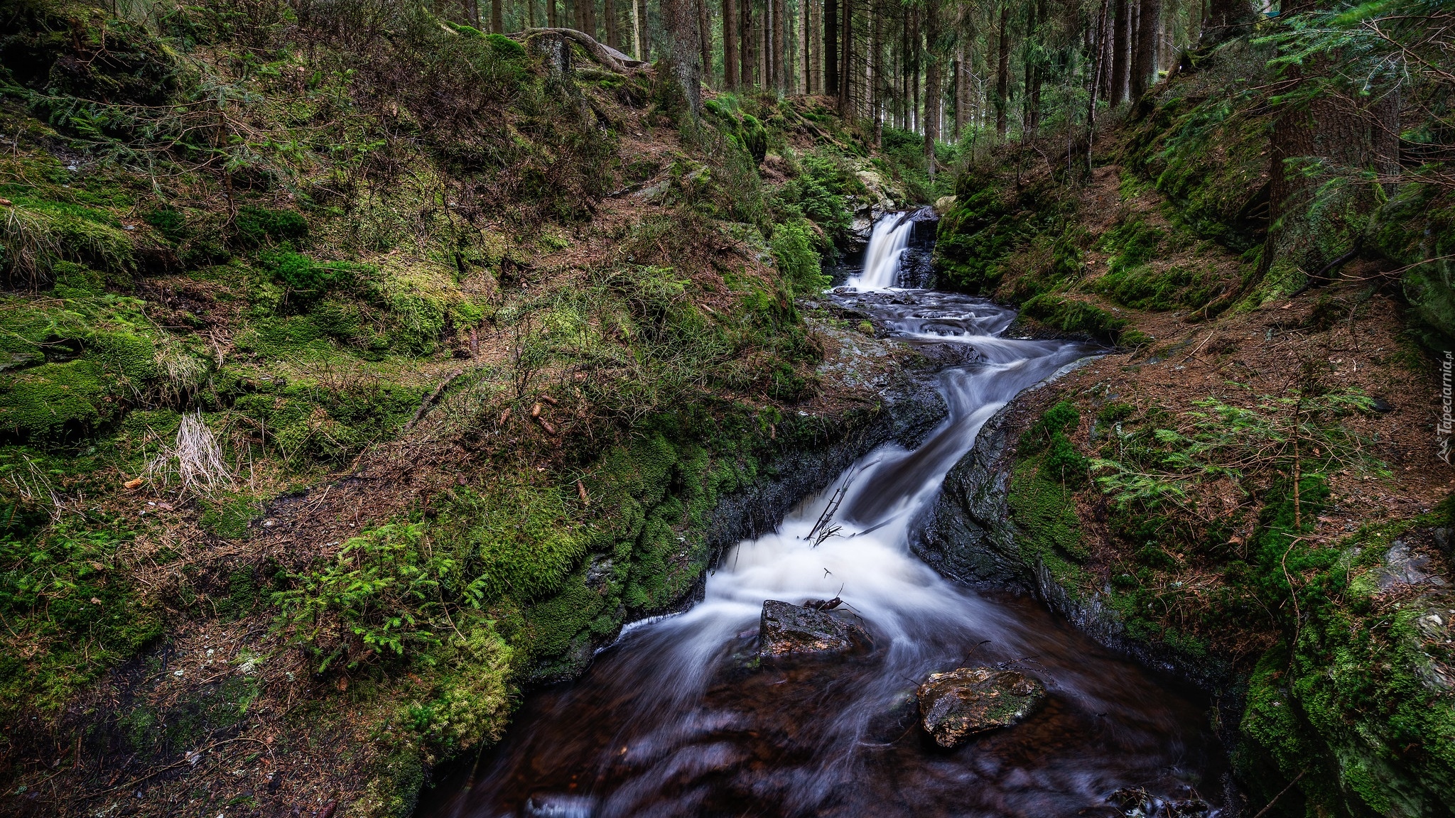 Edytor tapety: Rzeka spływająca po skarpie