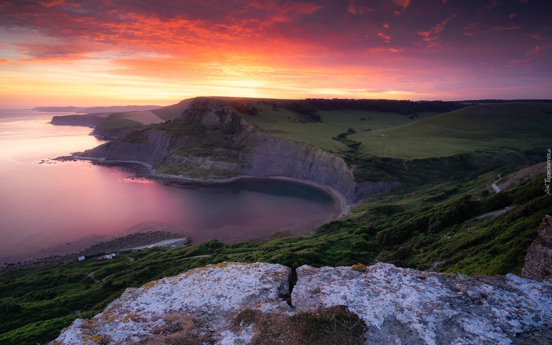 Edytor tapety: Wybrzeże Jurajskie pod kolorowym niebem zachodzącego słońca