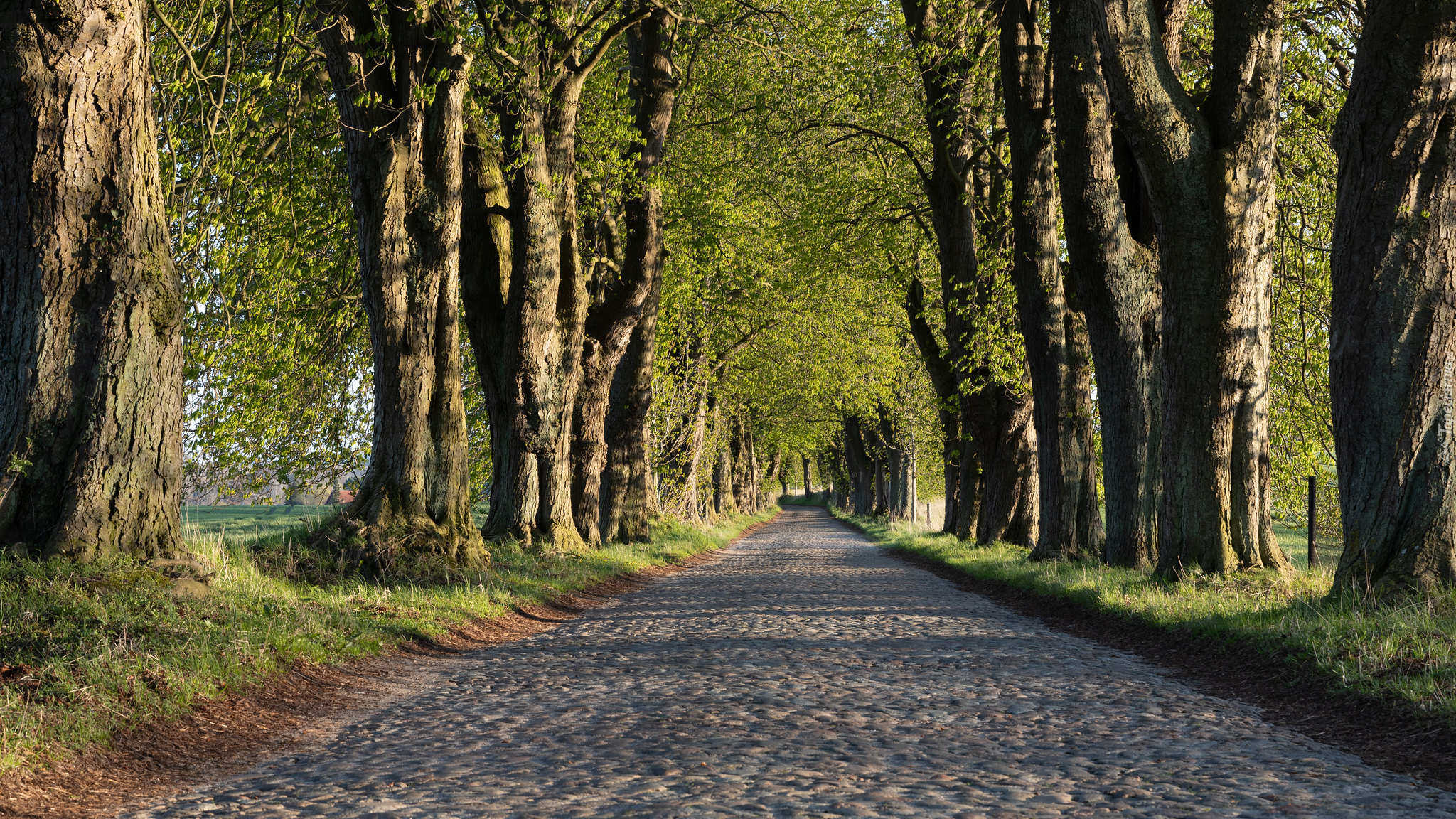 Edytor tapety: Szpalery drzew przy brukowanej drodze