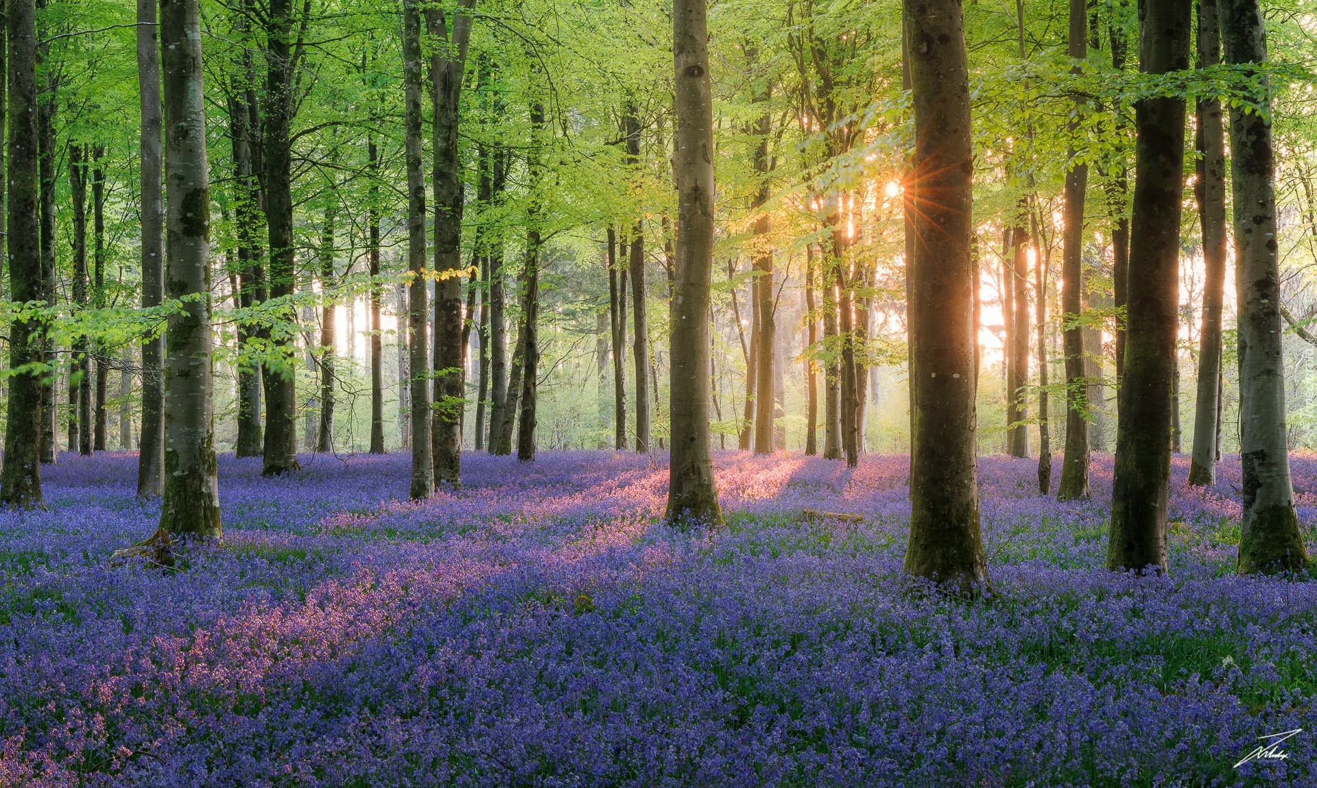 Edytor tapety: Kwiaty fioletowe pod drzewami