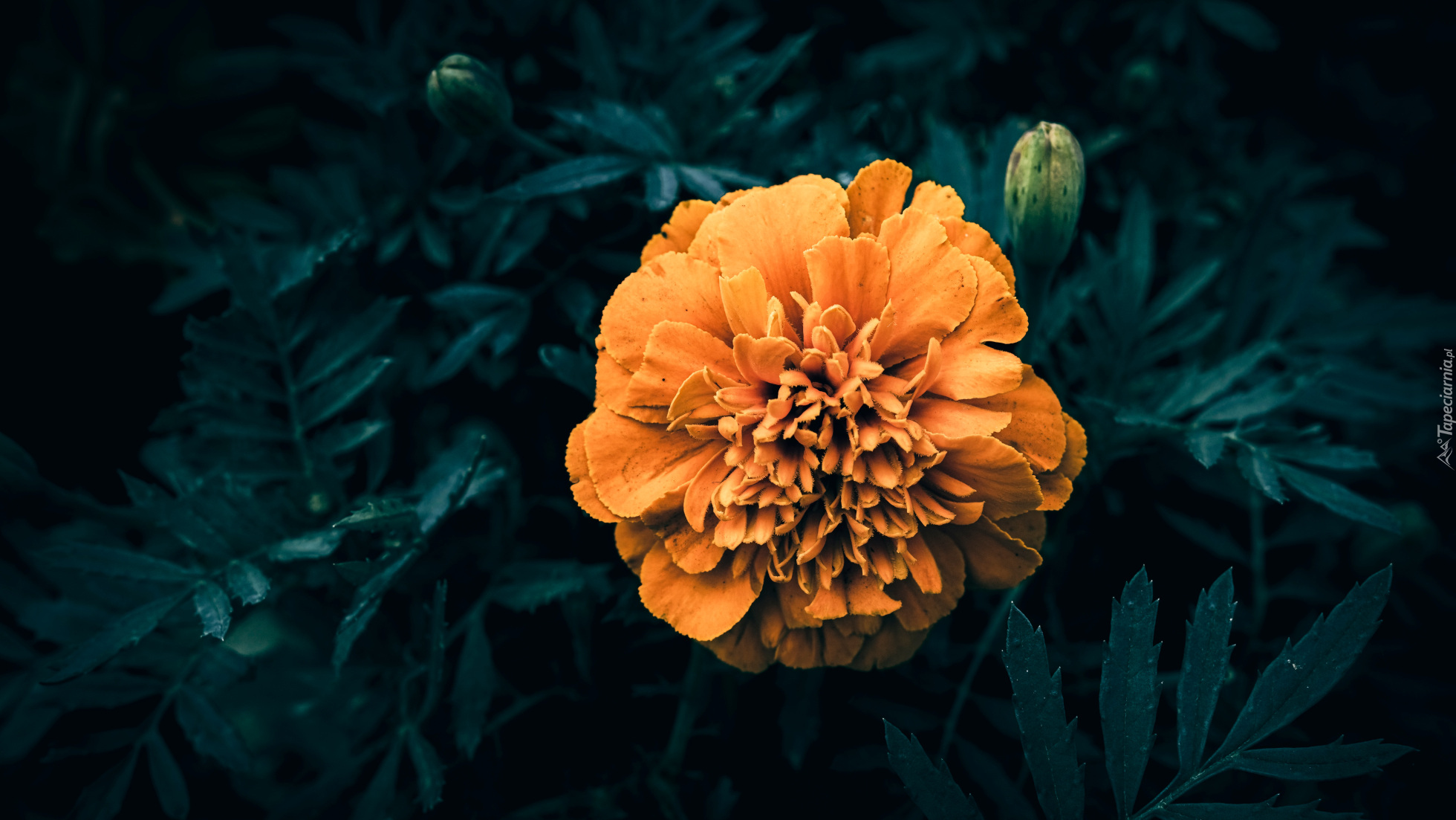 Edytor tapety: Aksamitka z pąkiem i liśćmi