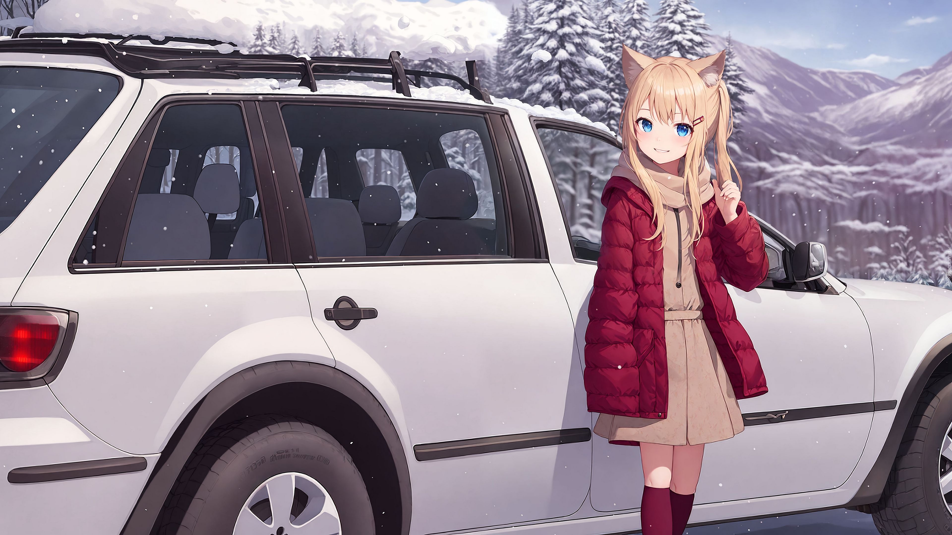 Edytor tapety: Dziewczyna w kurtce obok samochodu w anime