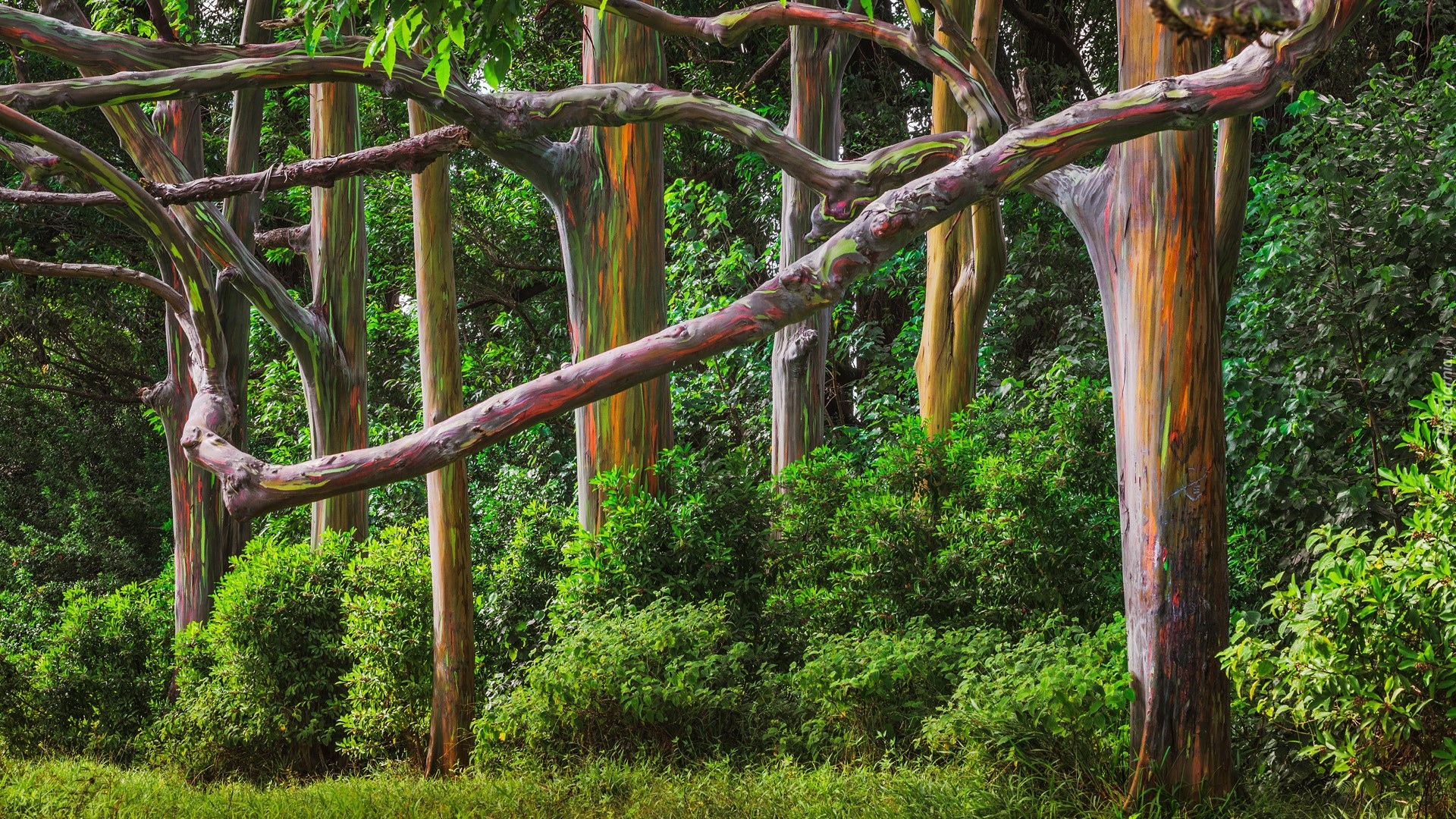 Edytor tapety: Drzewa o kolorowych pniach