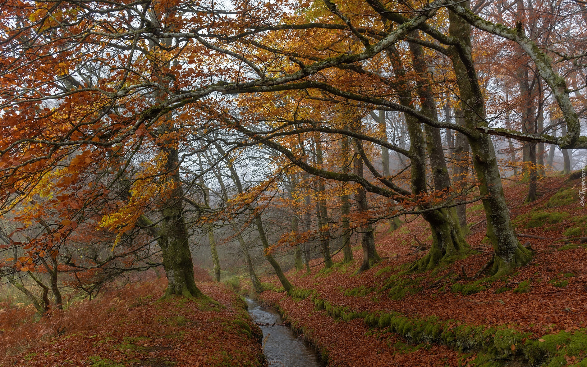 Edytor tapety: Jesienne drzewa nad strumieniem w lesie jesienią