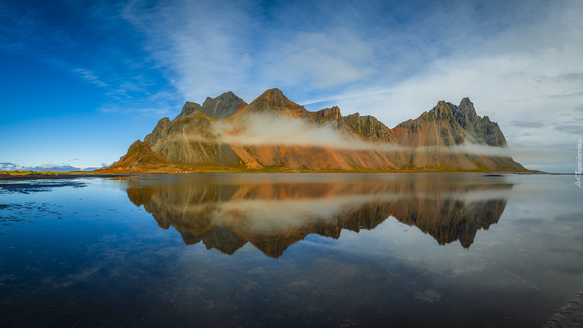 Edytor tapety: Odbicie góry Vestrahorn w morzu