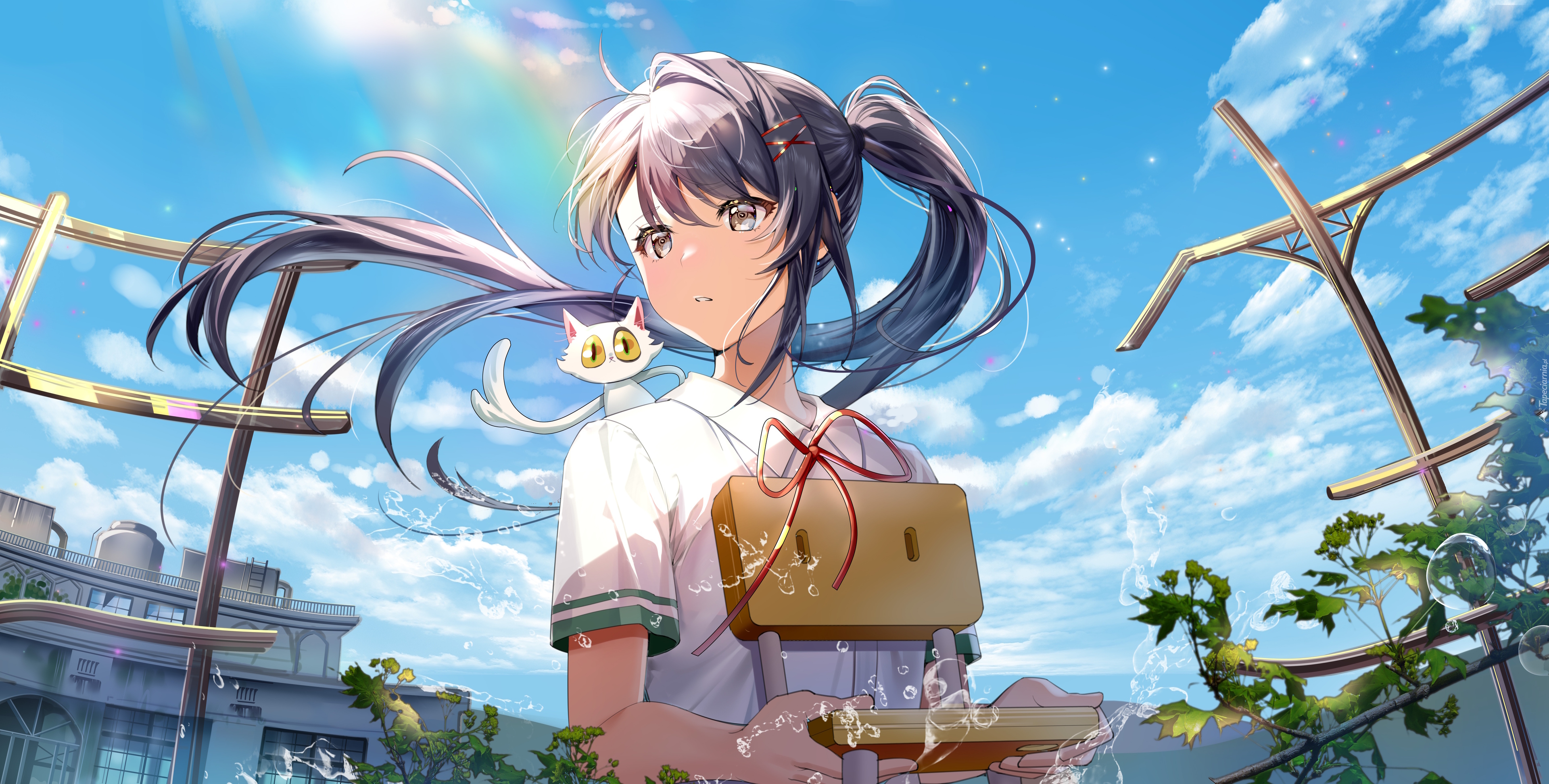 Edytor tapety: Suzume z kotkiem na ramieniu w anime