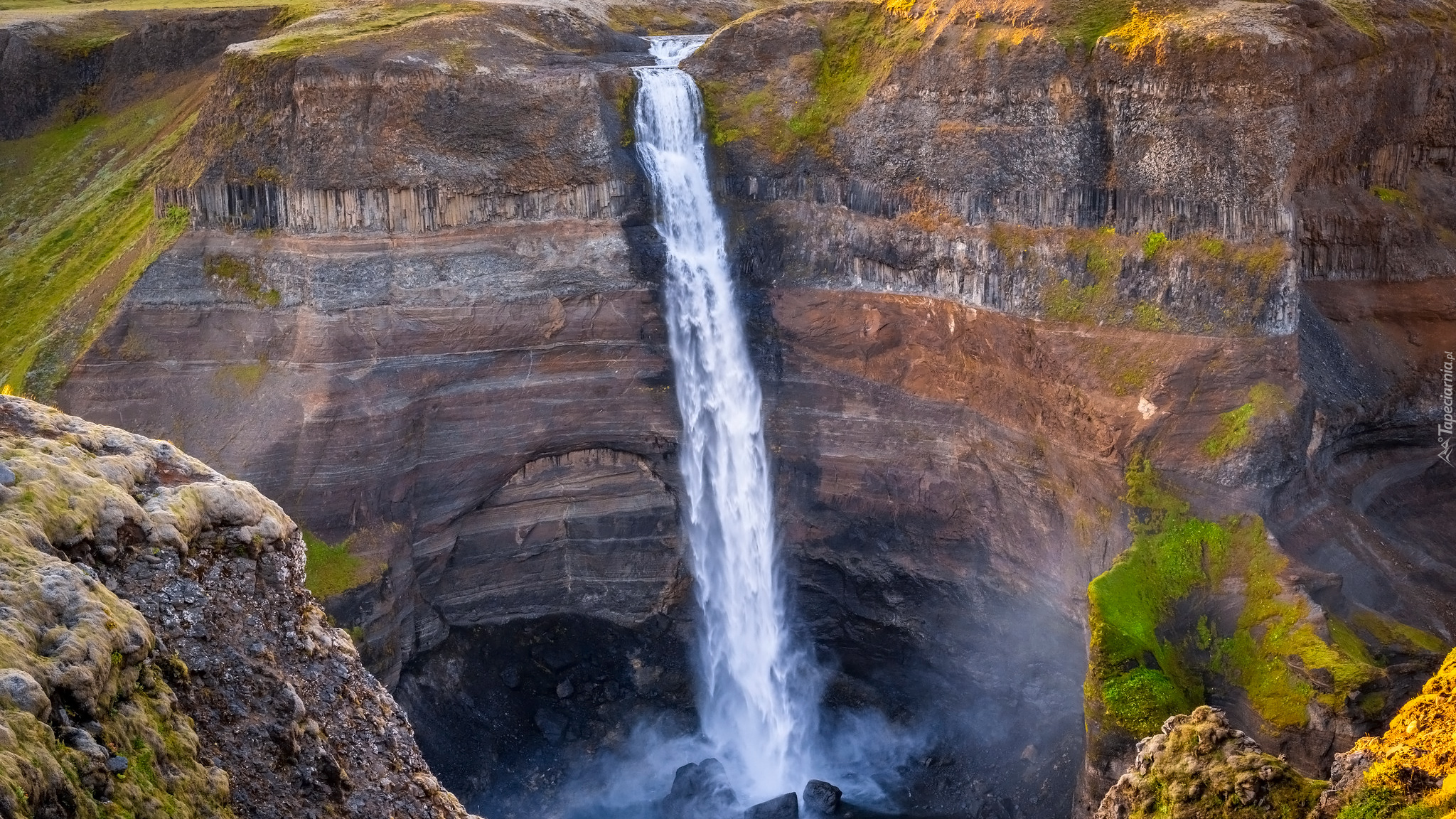 Edytor tapety: Wodospad Haifoss spływający po skałach w Islandii