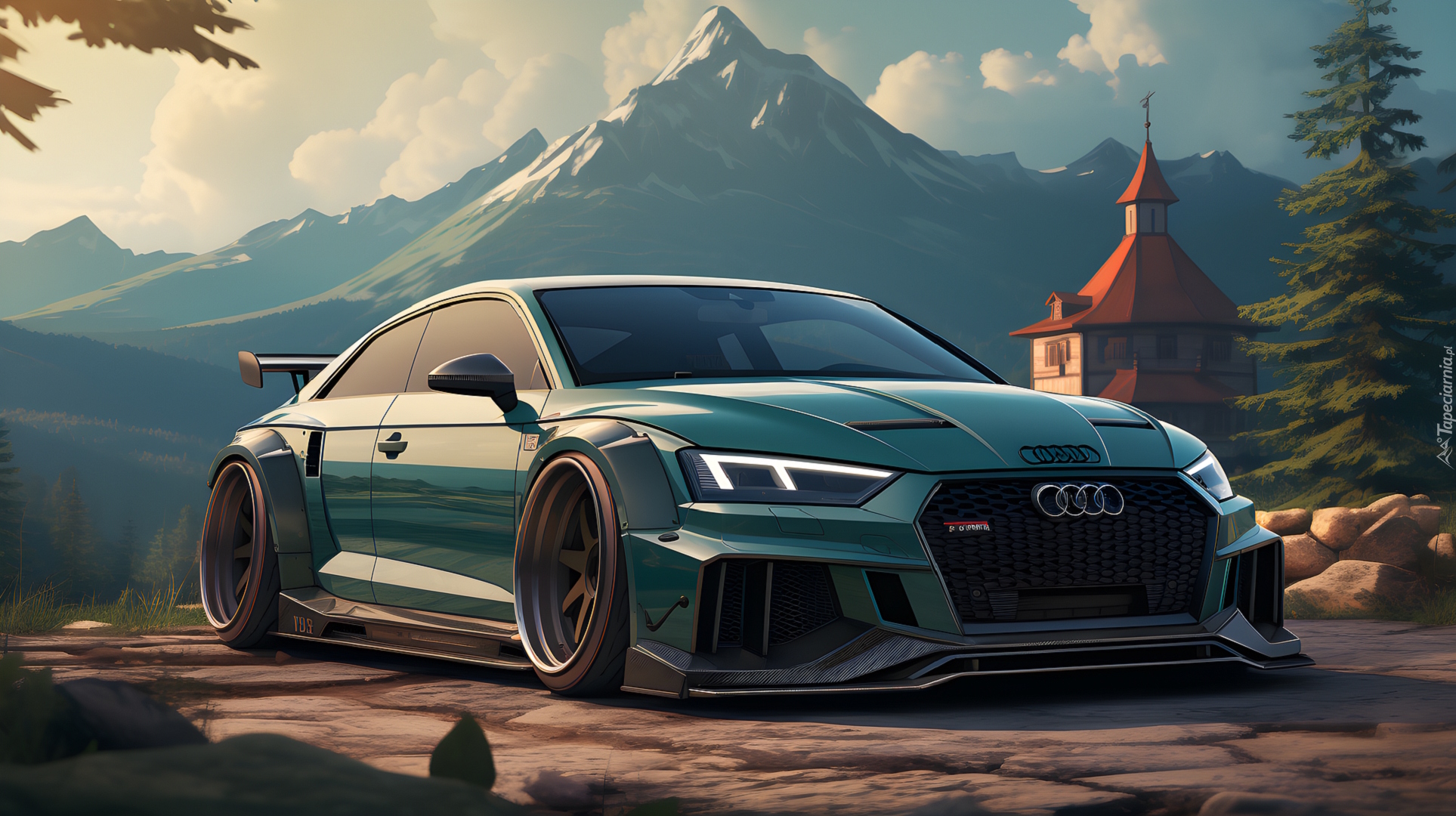 Edytor tapety: Audi RS5 na tle gór