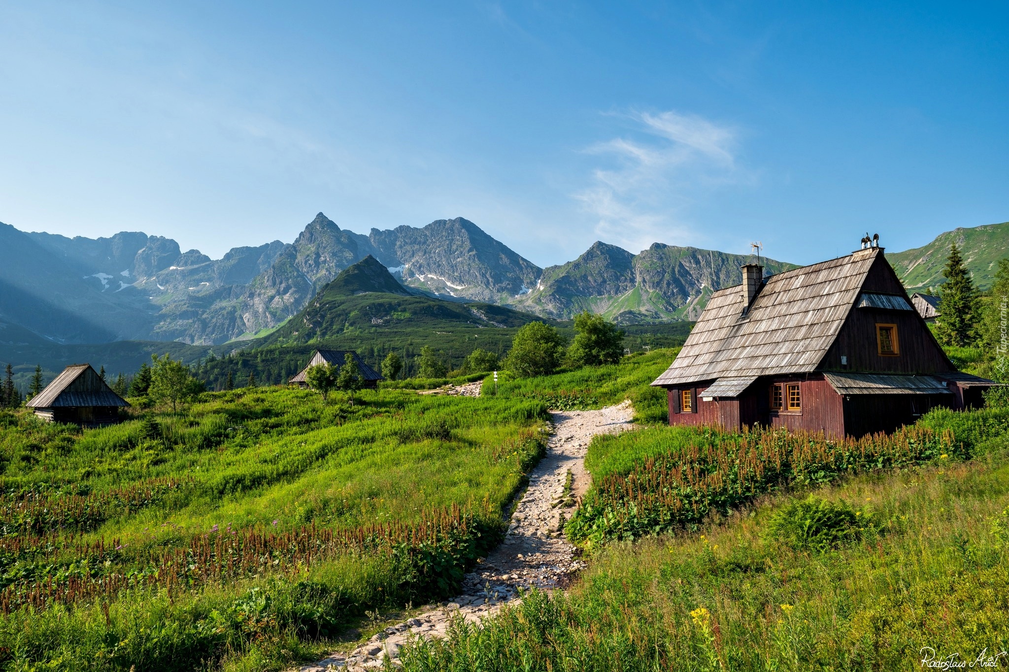 Edytor tapety: Domy na Hali Gąsienicowej z widokiem na Tatry