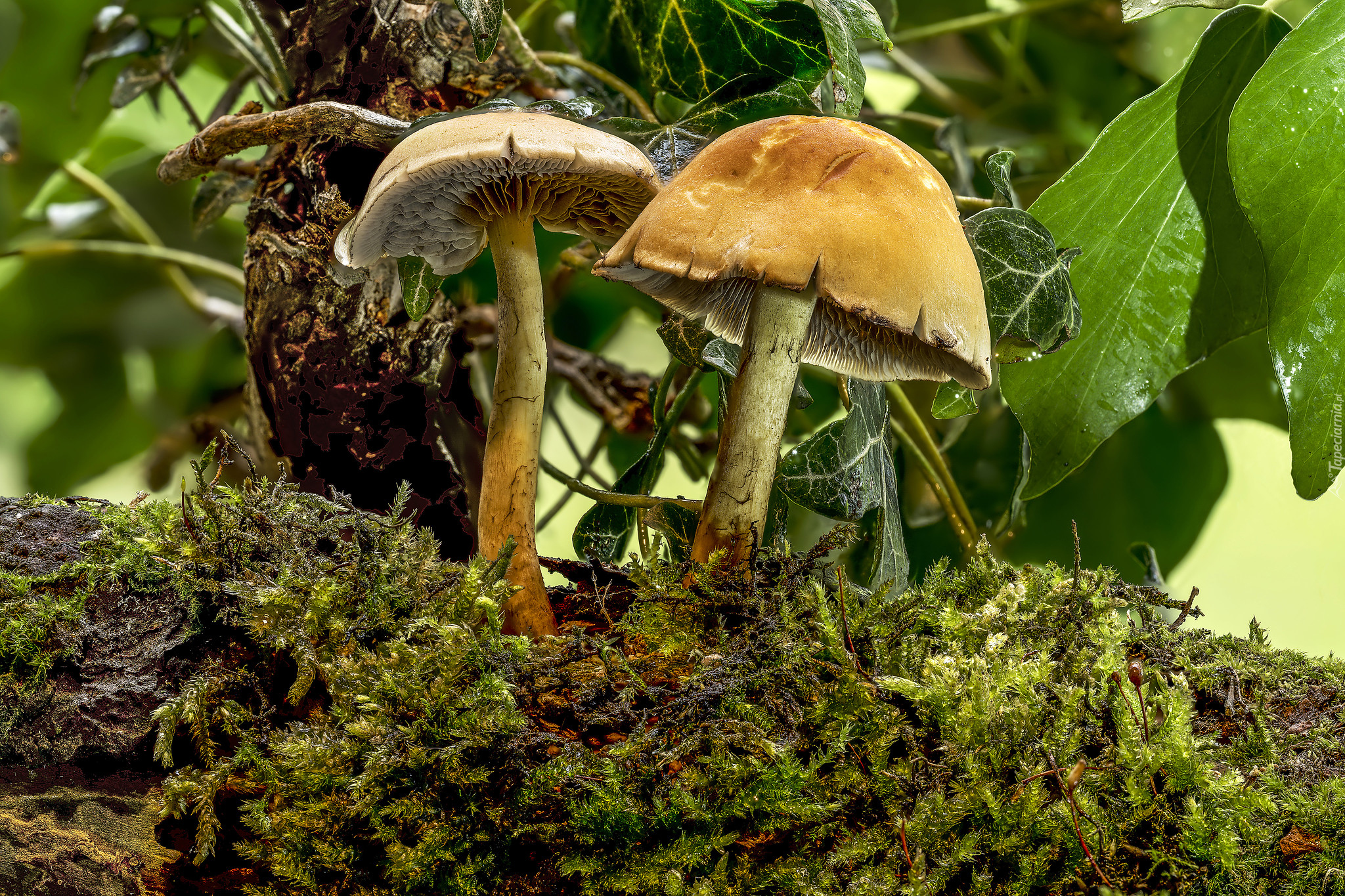 Edytor tapety: Dwa grzyby w leśnej ściółce