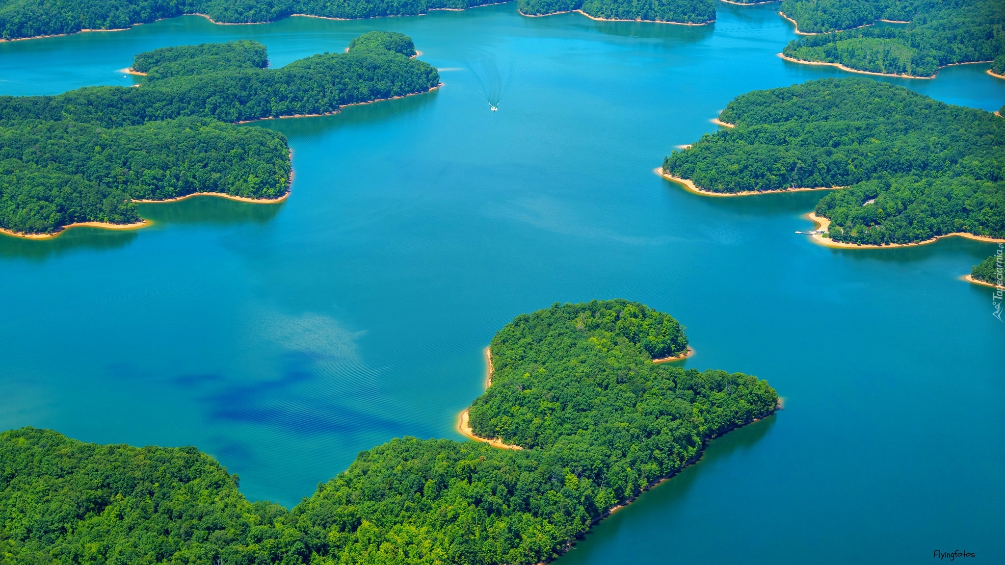 Edytor tapety: Zadrzewione półwyspy na jeziorze Laurel River Lake