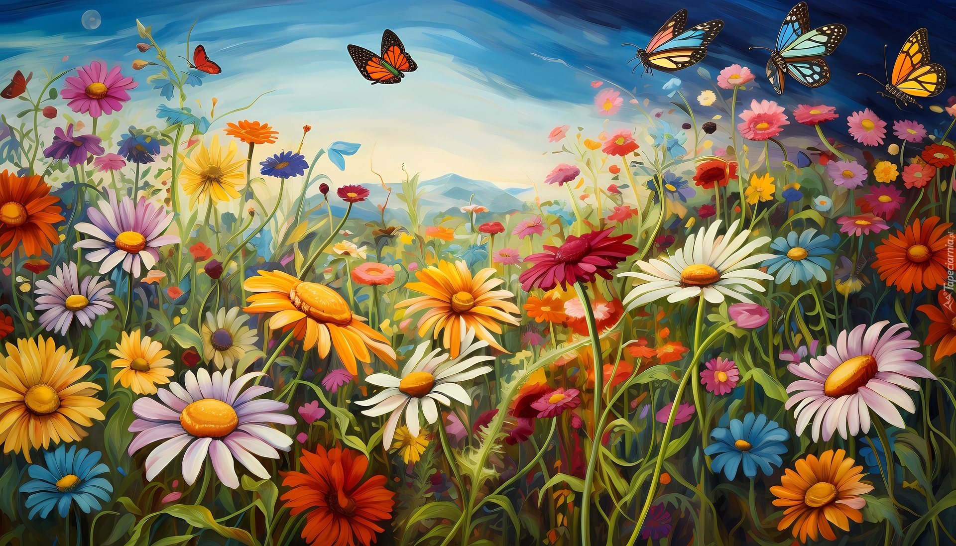 Edytor tapety: Motyle nad kwiatami w grafice