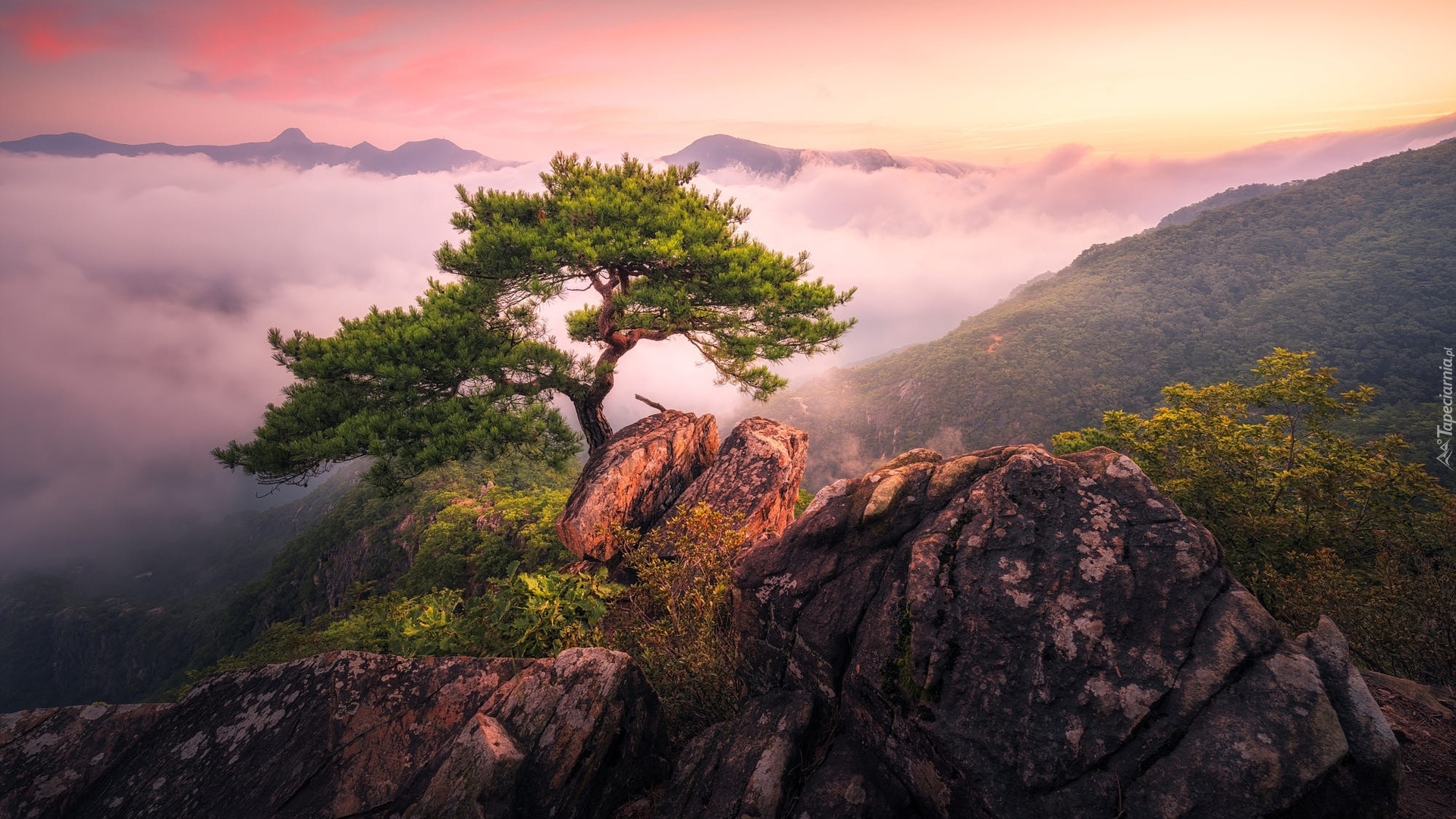 Edytor tapety: Samotna sosna na górze Jebibong w Korei Południowej