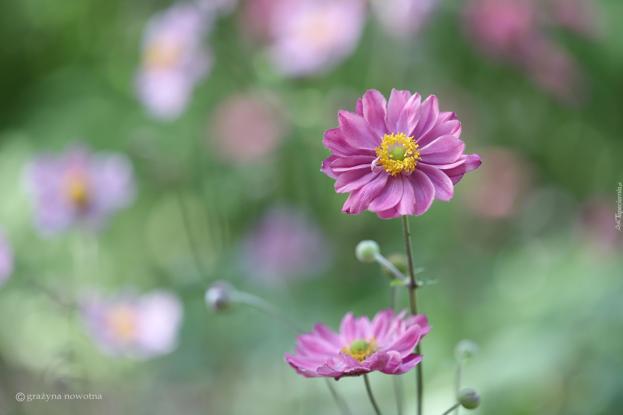 Edytor tapety: Dwa różowe zawilce na rozmytym tle