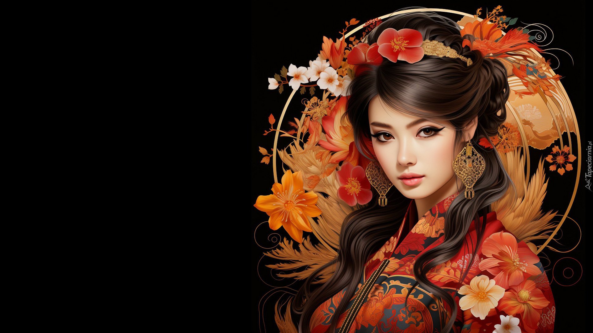 Edytor tapety: Kobieta w grafice na ciemnym tle
