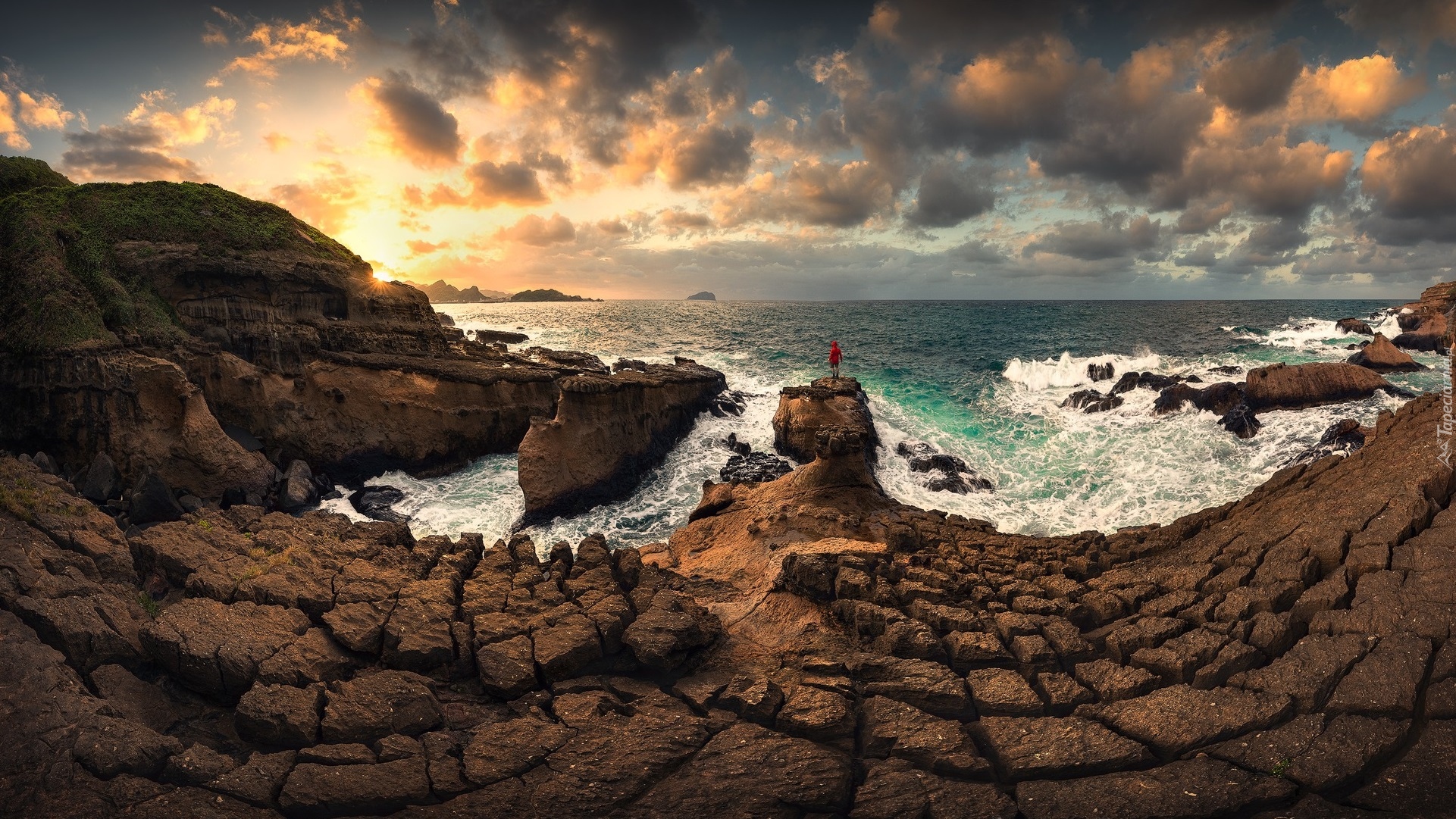 Edytor tapety: Chmury nad skalistym wybrzeżem morza