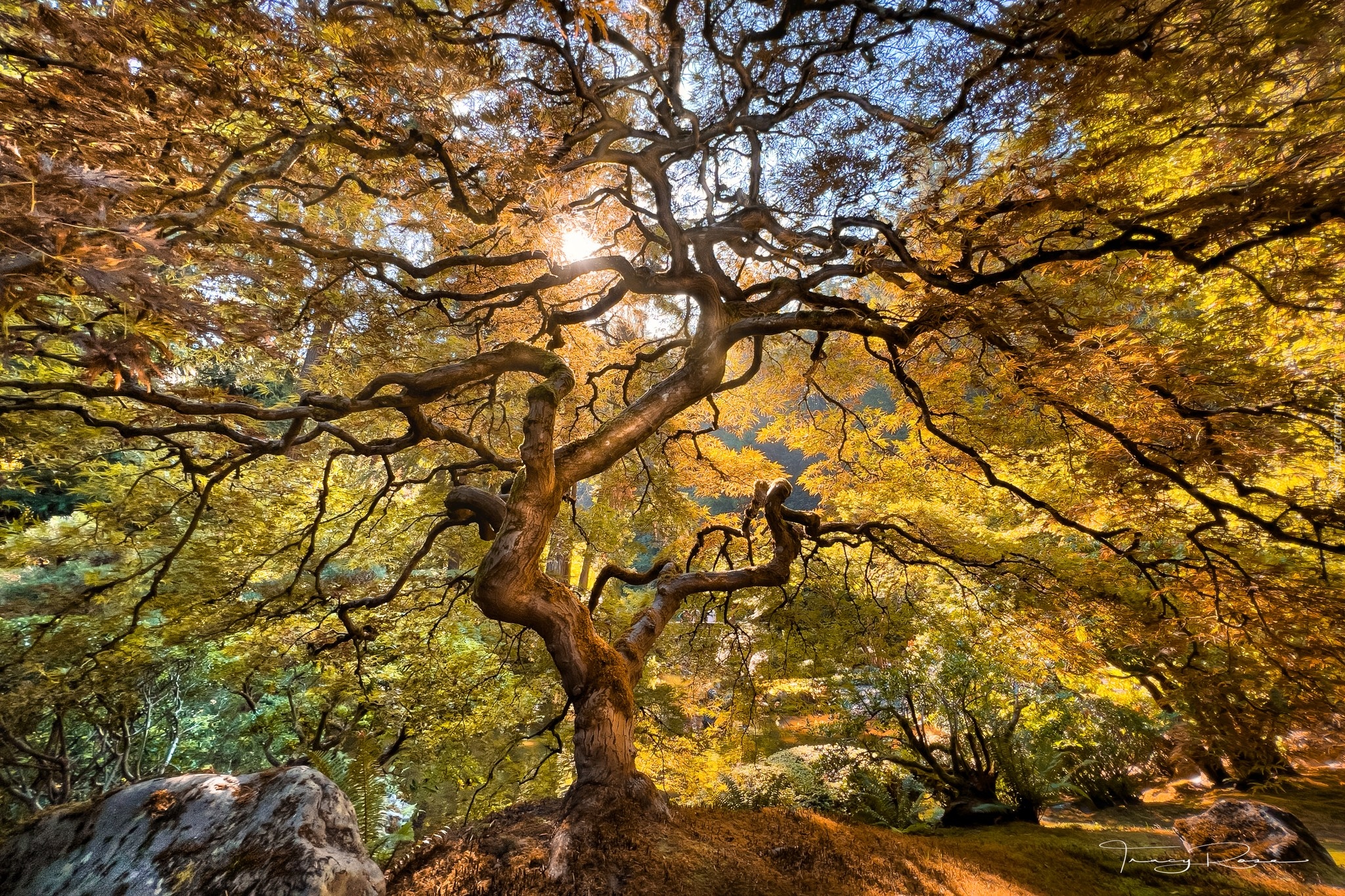 Edytor tapety: Rozświetlony rozłożysty jesienny klon palmowy
