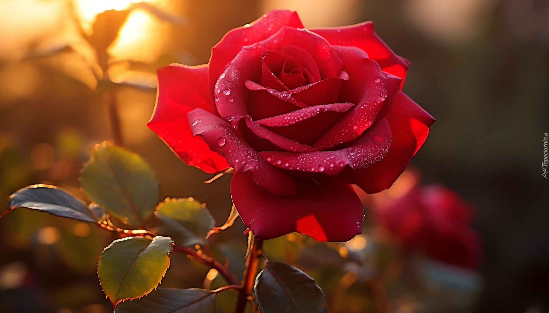 Edytor tapety: Mokra rozświetlona czerwona róża
