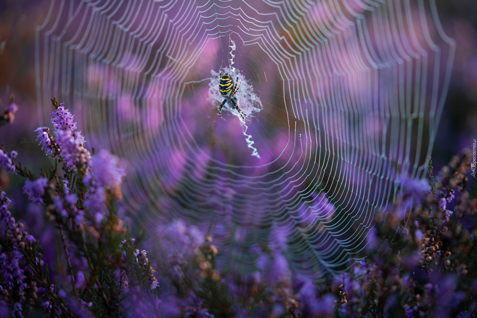 Edytor tapety: Pająk i pajęczyna na wrzosach
