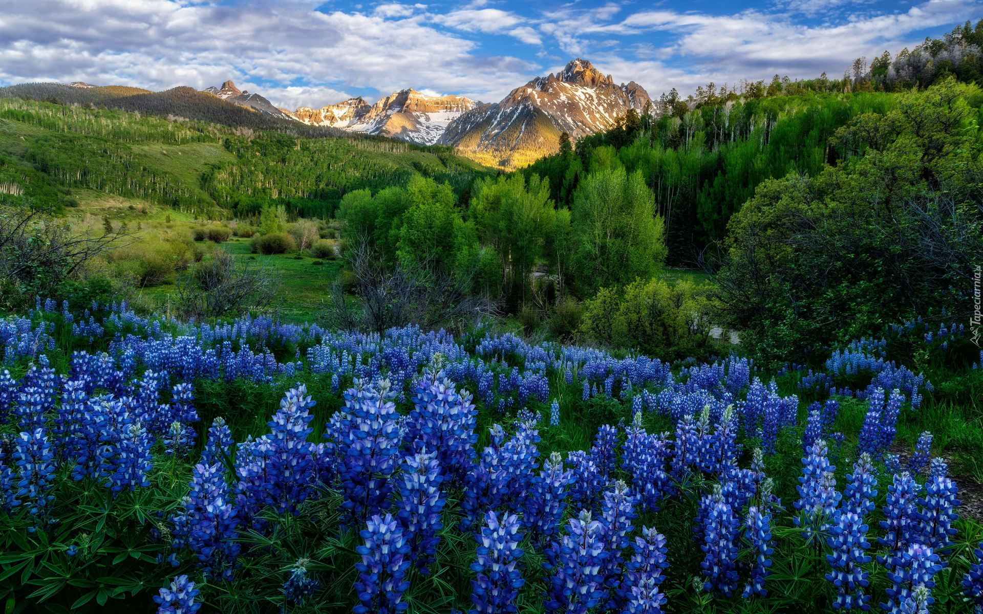 Edytor tapety: Kwitnący łubin na górskiej polanie