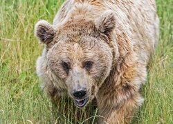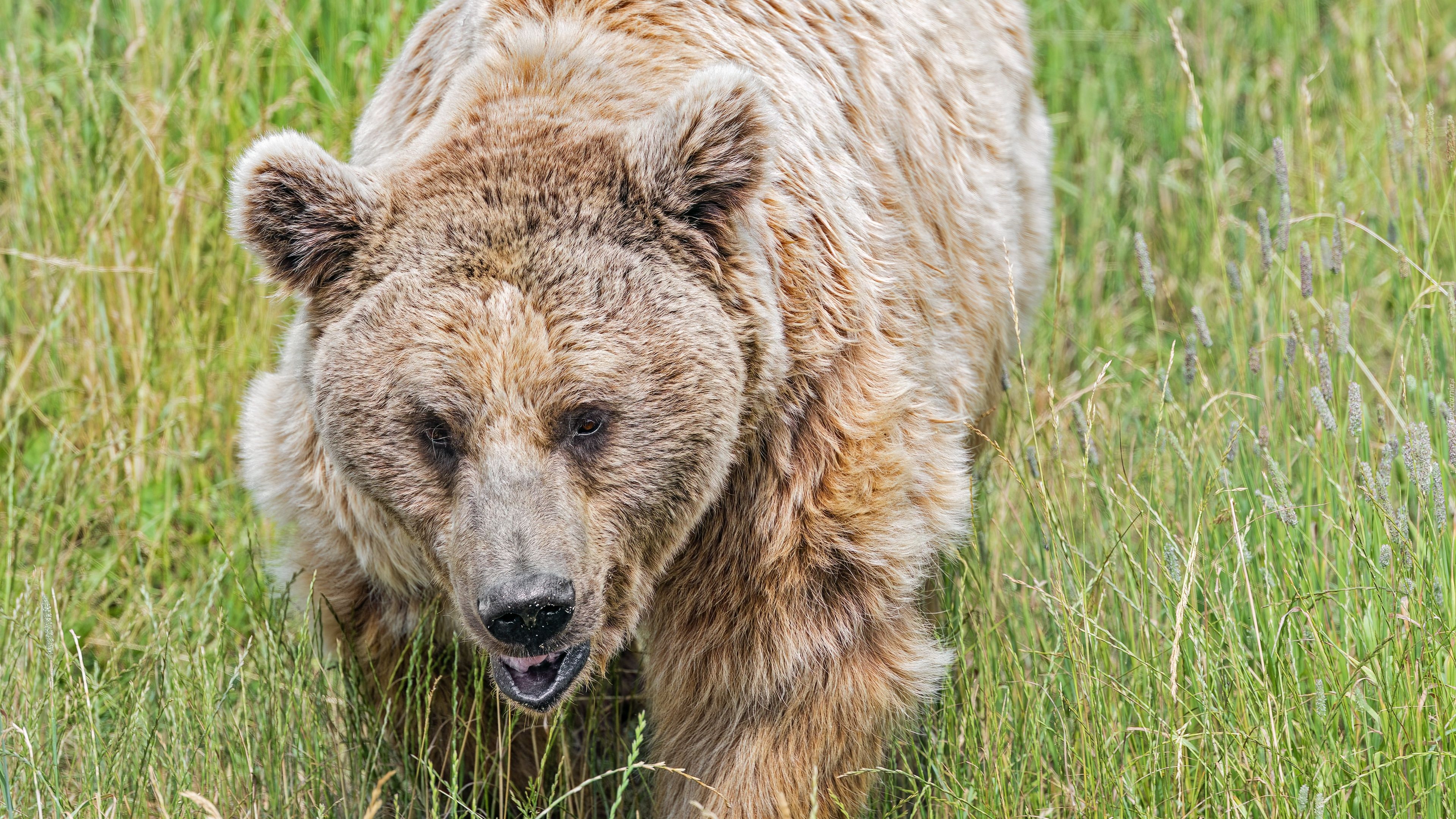 Edytor tapety: Niedźwiedź w trawie w zbliżeniu