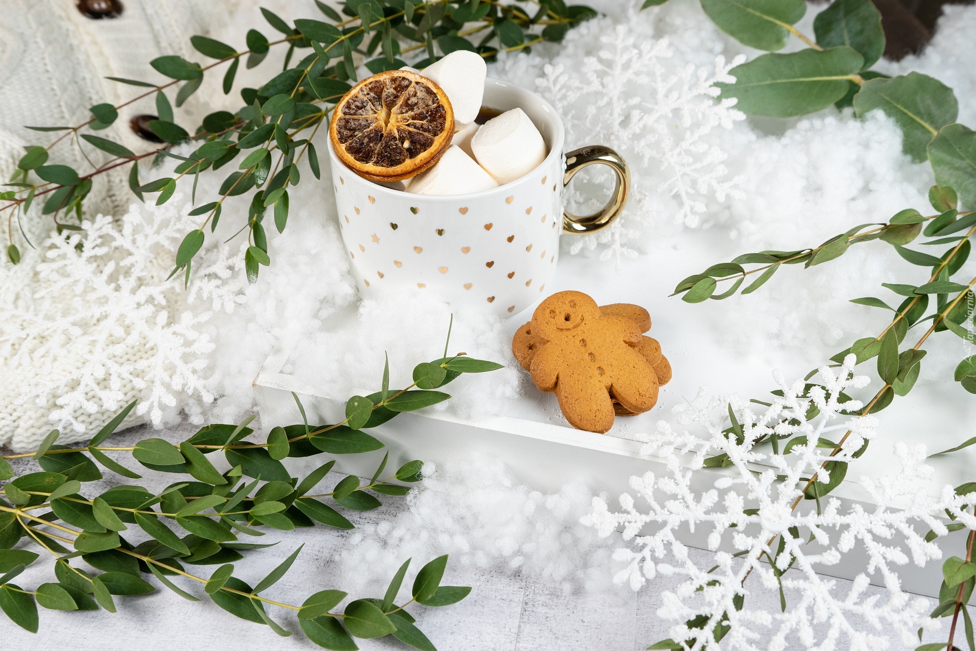 Edytor tapety: Piernikowe ludziki obok kubka z piankami