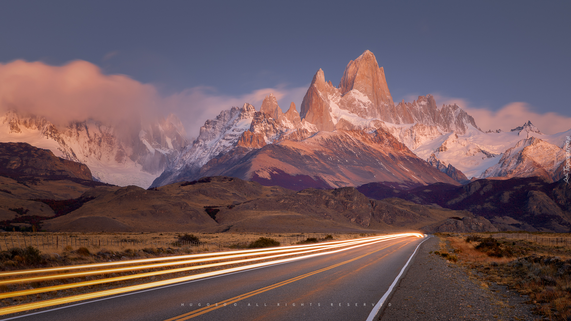 Edytor tapety: Droga w kierunku ośnieżonych gór w El Chalten