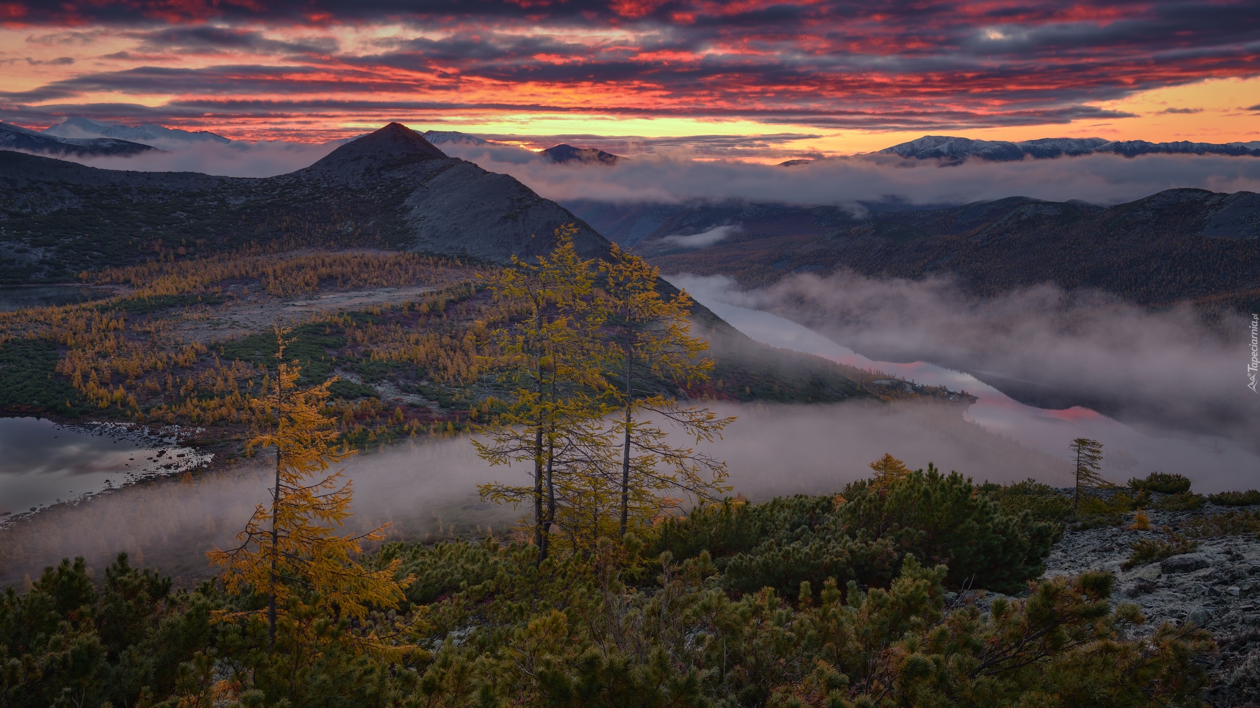 Edytor tapety: Kolorowe niebo i poranna mgła nad Górami Kołymskimi
