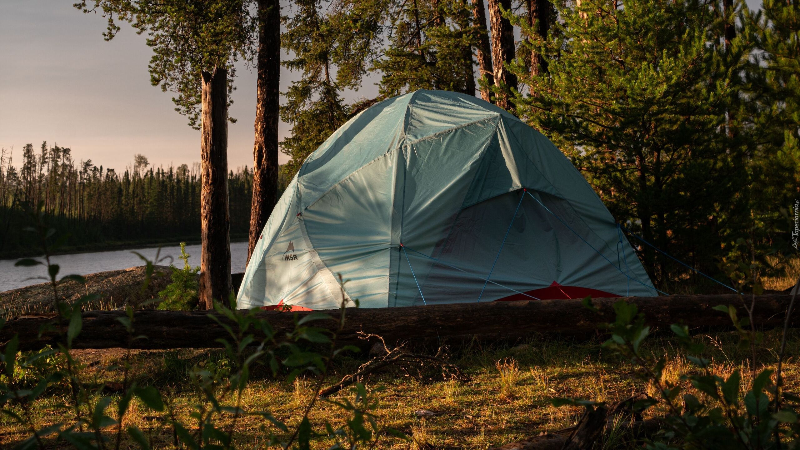 Edytor tapety: Namiot pod drzewami nad wodą
