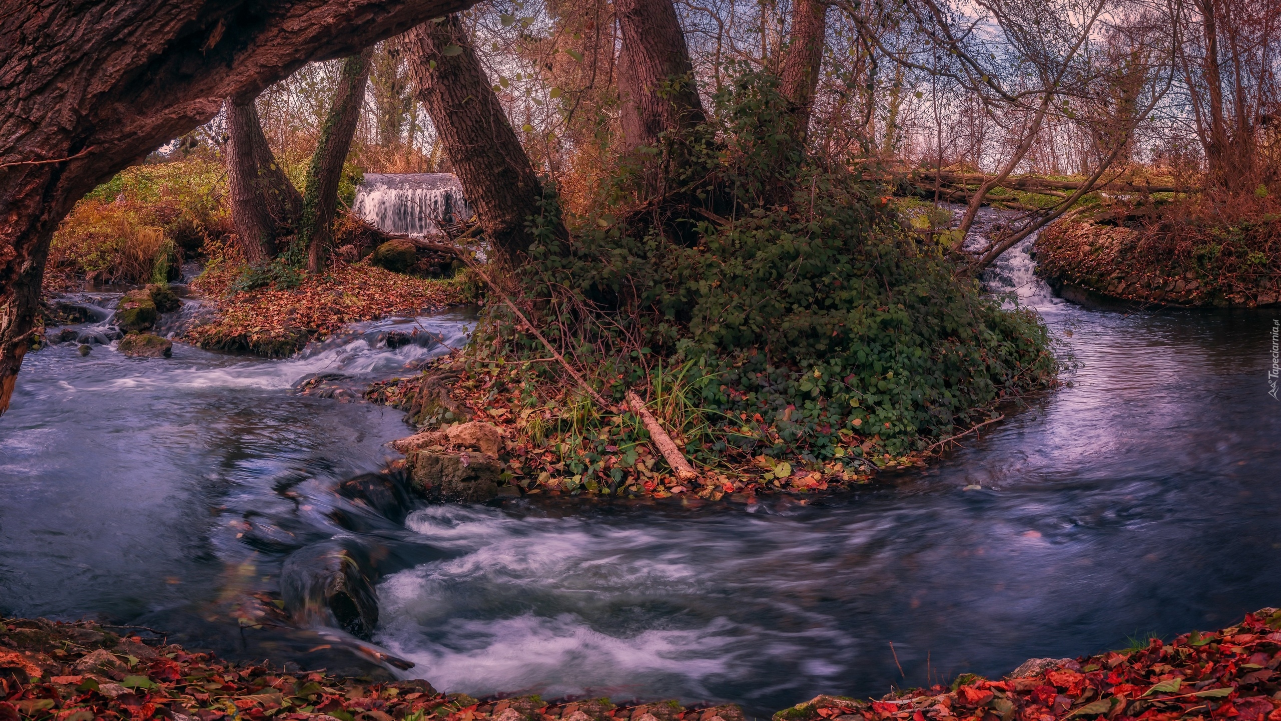 Edytor tapety: Drzewo na wysepce na środku rzeki