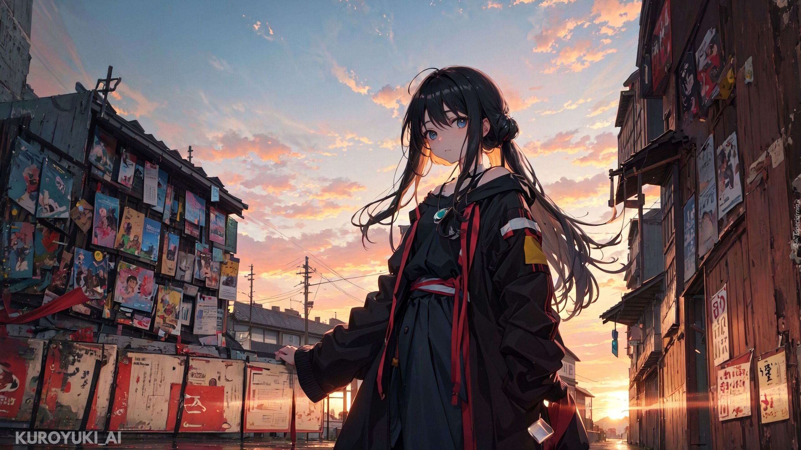 Edytor tapety: Długowłosa dziewczyna na ulicy miasta w anime