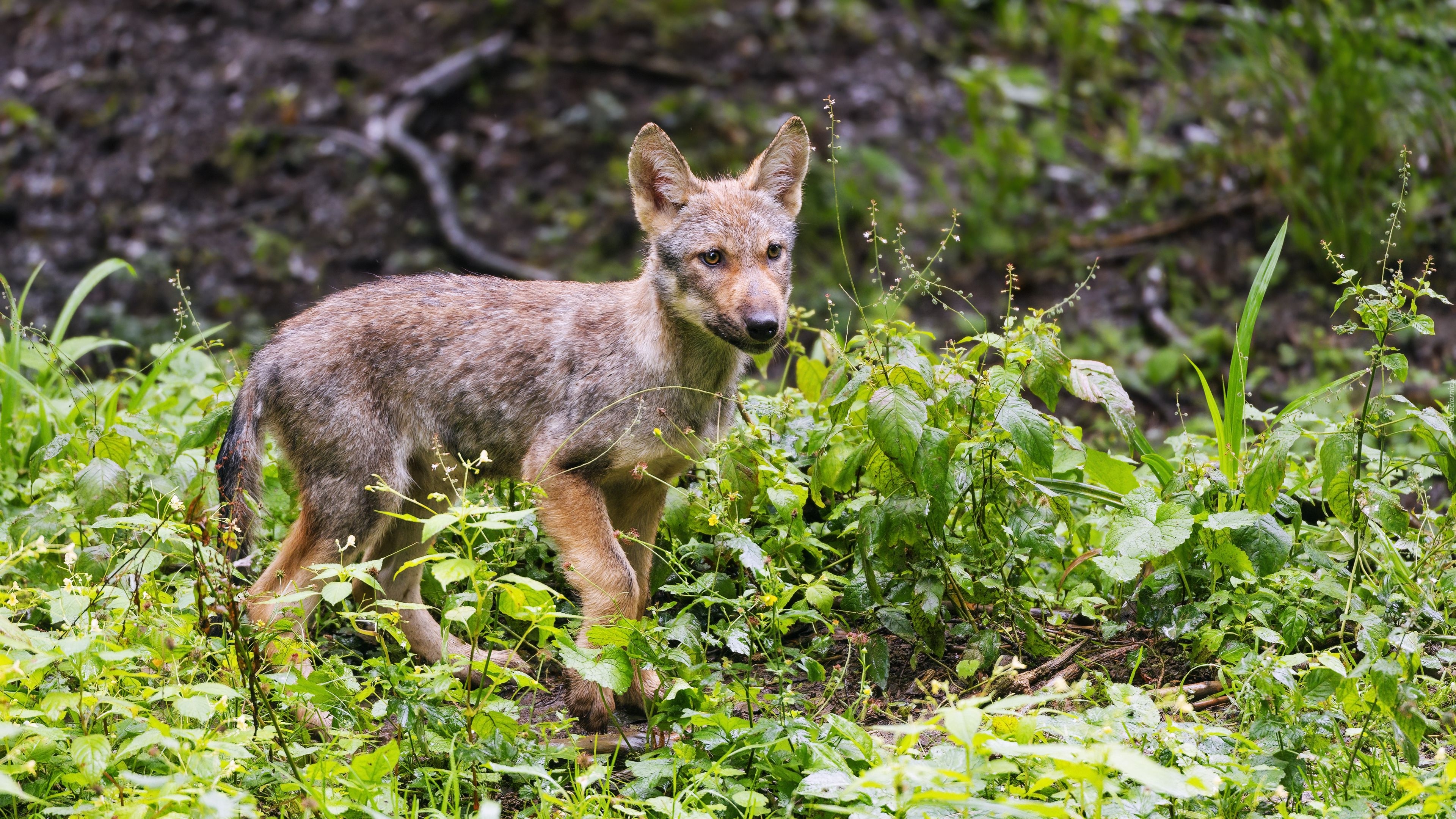 Edytor tapety: Młody wilk w zbliżeniu