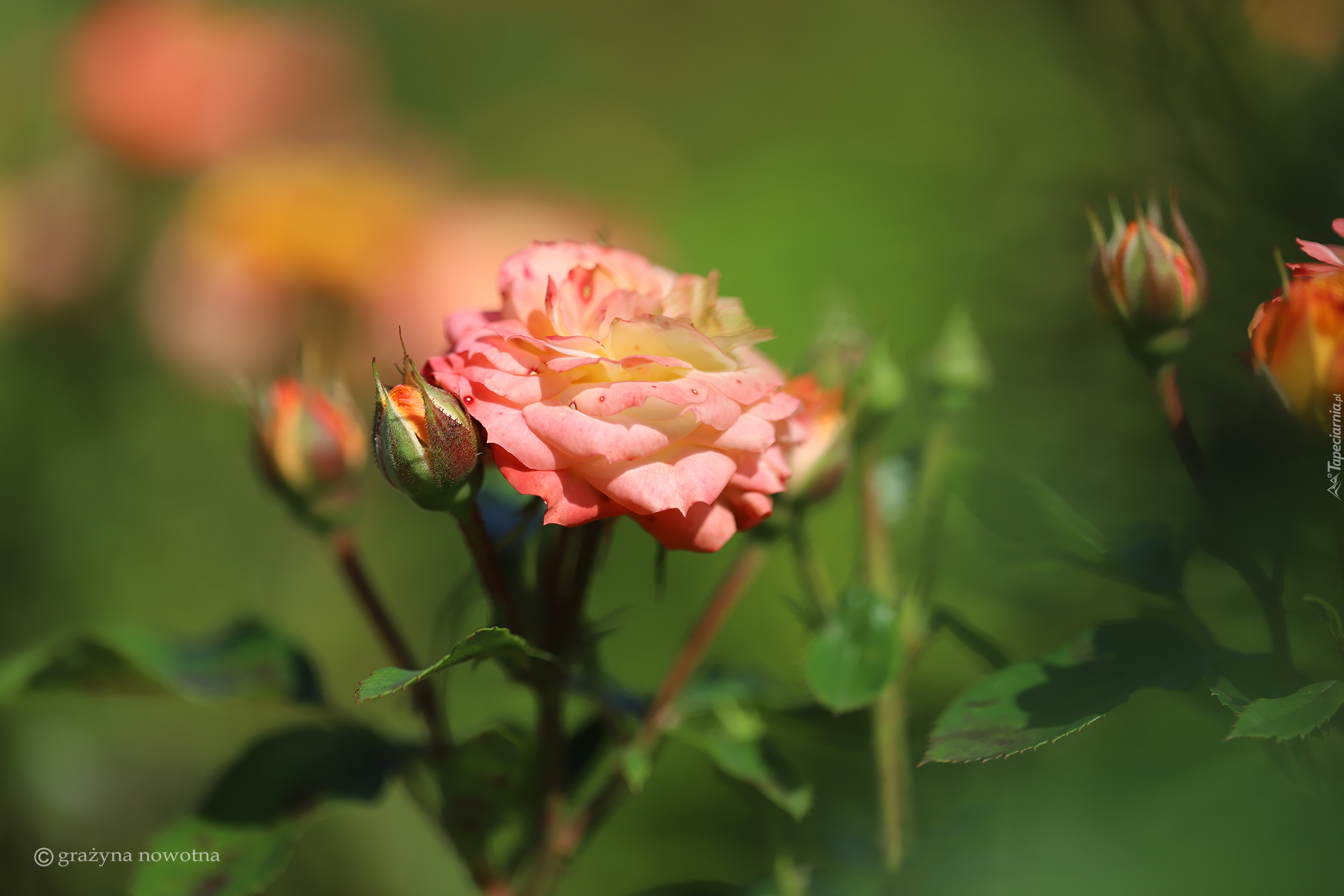 Edytor tapety: Rozświetlona róża z pąkiem
