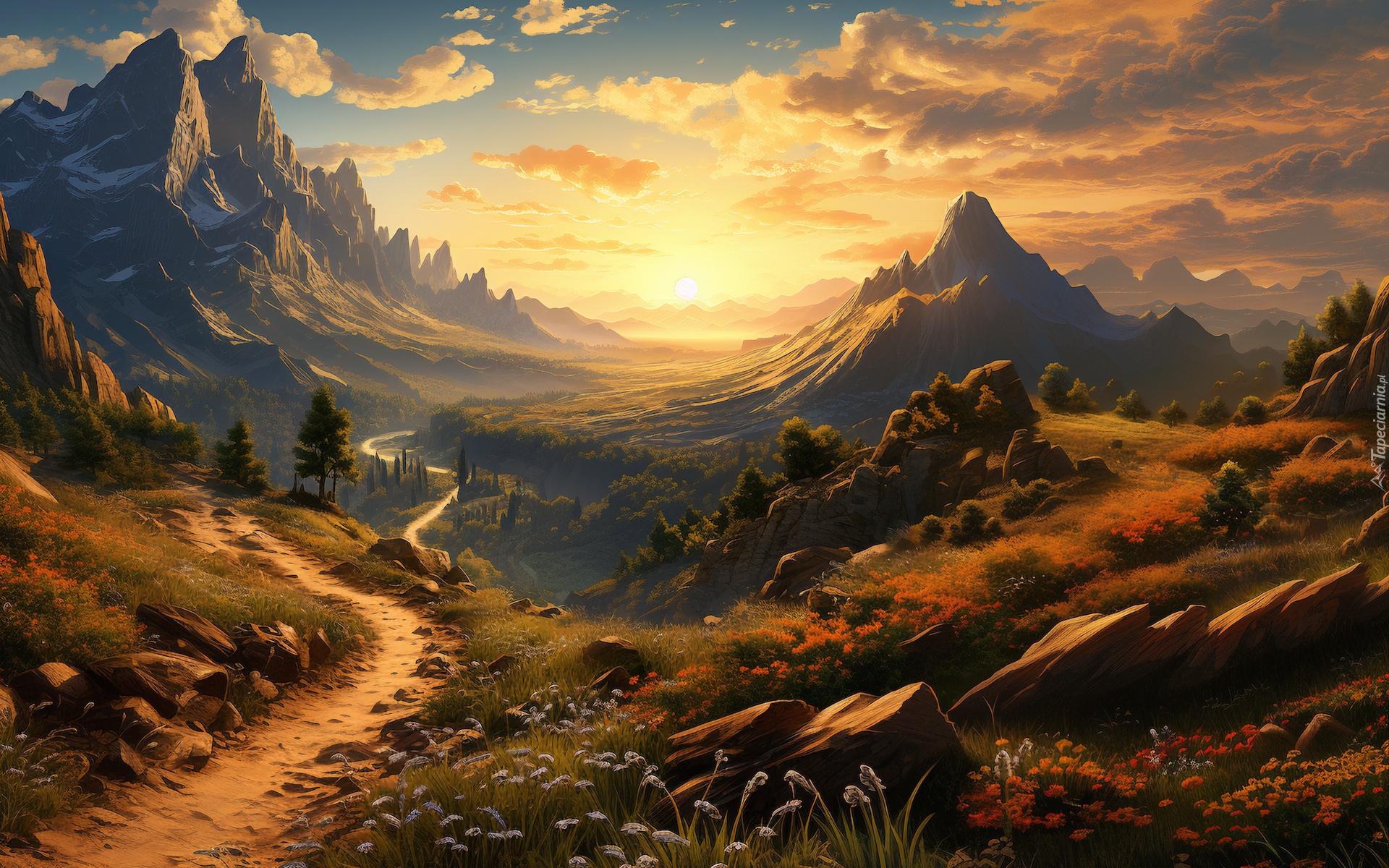 Edytor tapety: Droga i dolina w górach w 2D