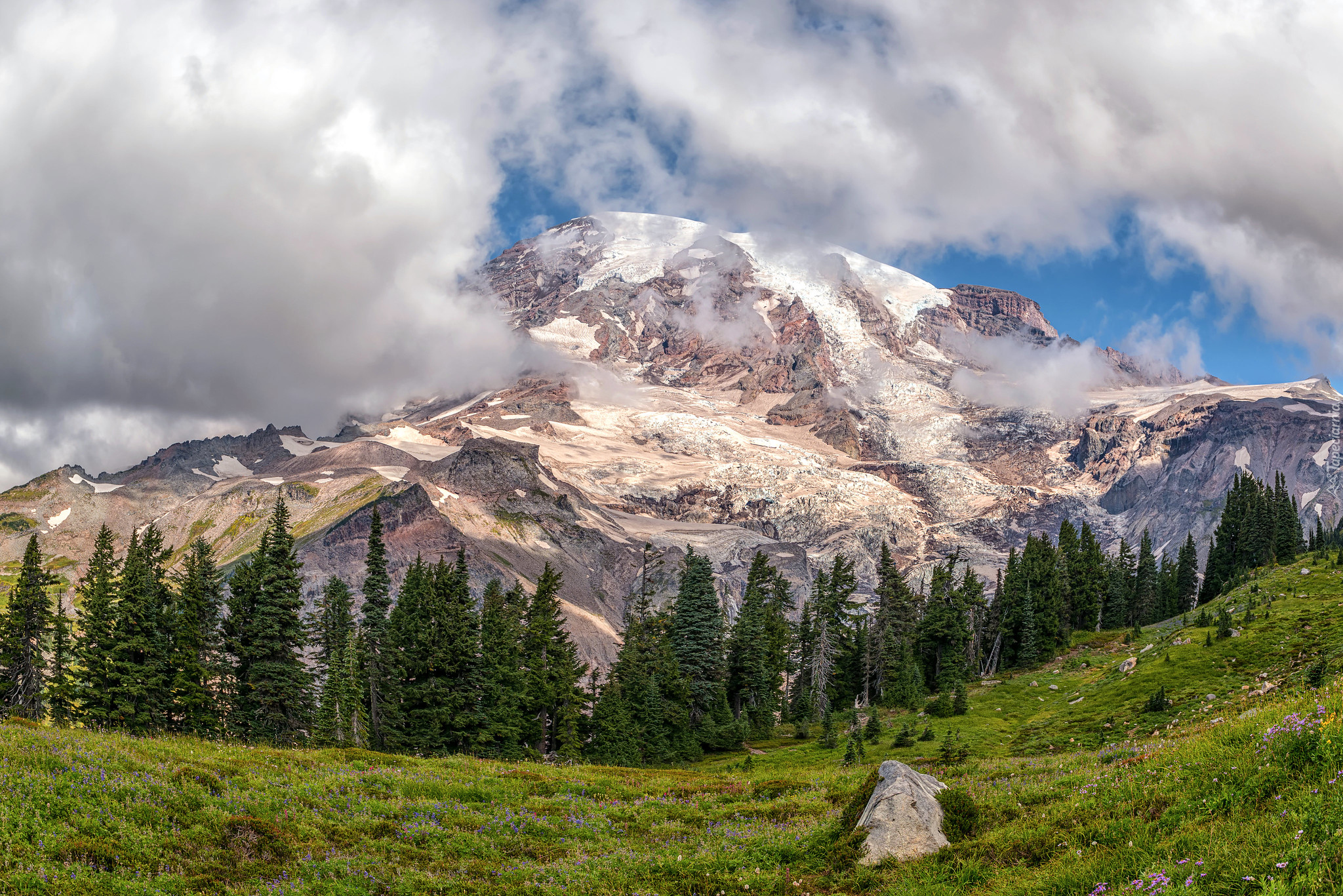Edytor tapety: Mgła nad ośnieżonymi górami