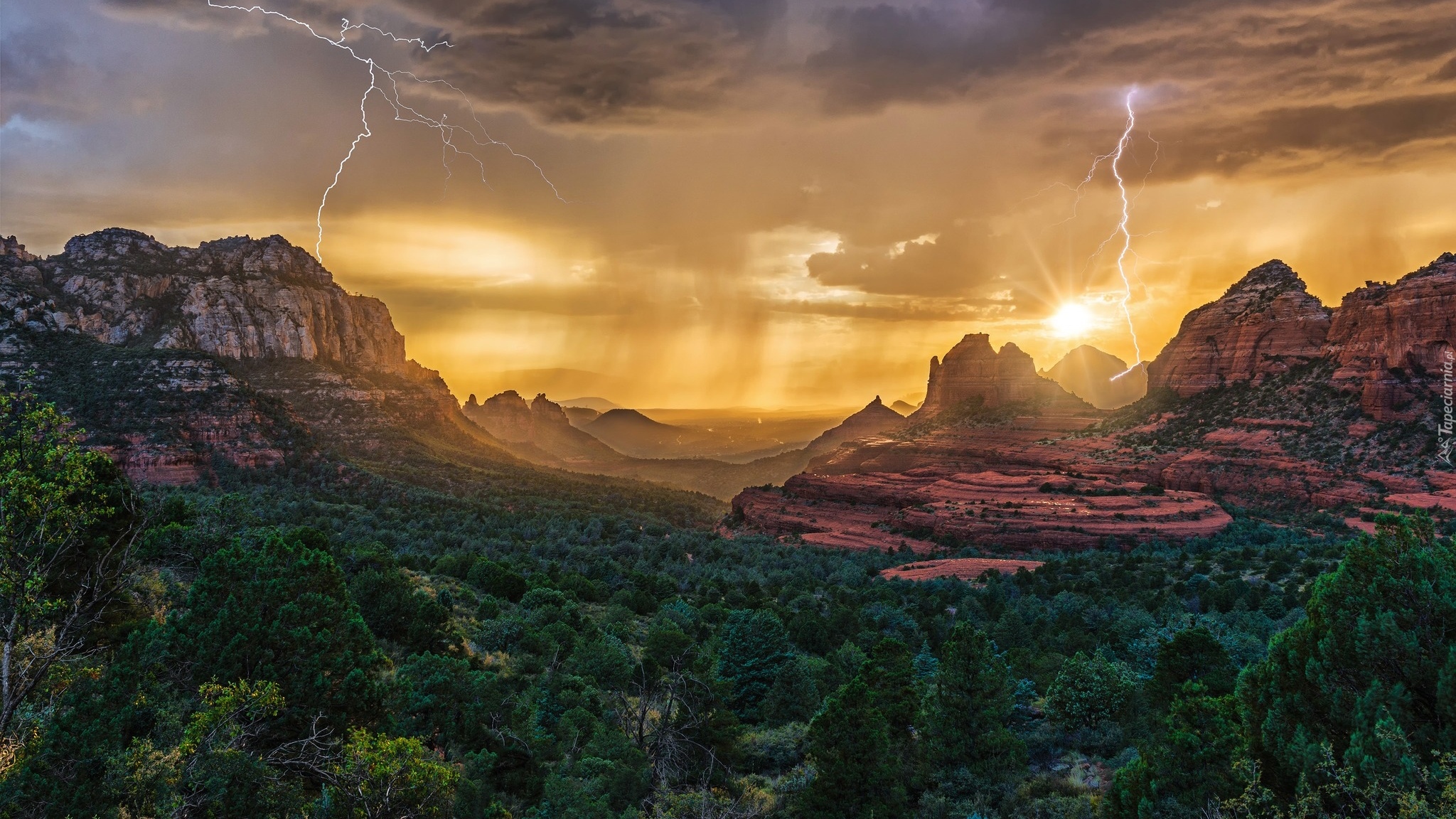 Edytor tapety: Pioruny nad skałami w Sedonie