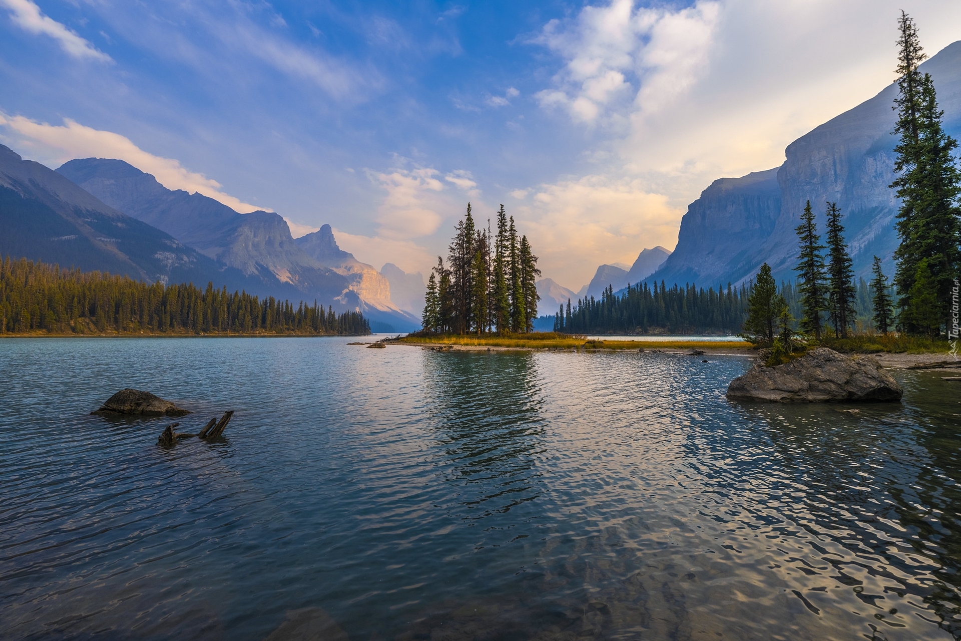 Edytor tapety: Widok na Wyspę Ducha na jeziorze Maligne
