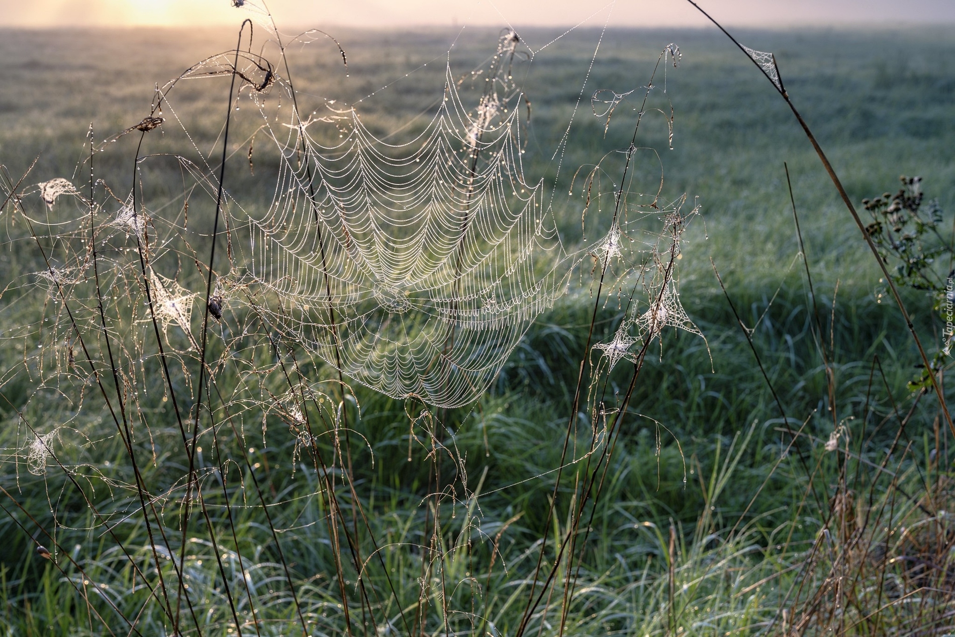 Edytor tapety: Pajęczyna w trawie